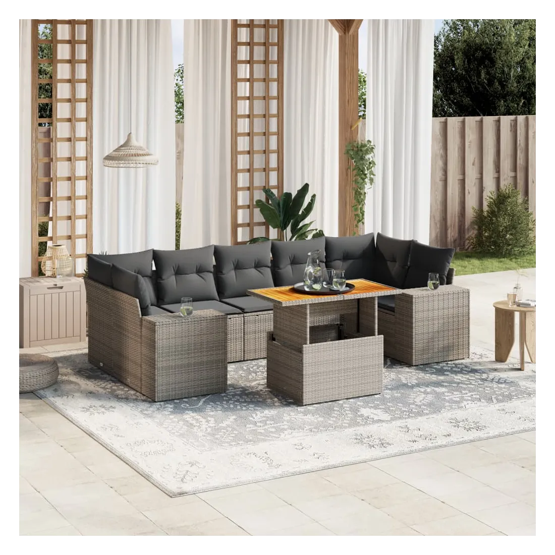 Cet ensemble de canapés de jardin est le complément parfait de votre arrière-cour, terrasse ou patio, offrant un espace confortable et accueillant pour discuter avec la famille et les amis ou simplement se détendre et profiter de l'extérieur. Matériau durable : la résine tressée, également connue sous le nom de poly rotin, est un matériau synthétique solide et nécessitant peu d'entretien qui ressemble au rotin naturel. Il est léger, facile à nettoyer et couramment utilisé pour les meubles d'extérieur en raison de sa durabilité et de ses propriétés de résistance aux intempéries.Dessus de table réglable : le dessus de table peut être soulevé pour rendre la table plus haute, ce qui transforme la table d'extérieur d'une table basse à une table de salle à manger. Elle est parfaite pour recevoir des invités ou prendre des repas à l'extérieur.Expérience d'assise confortable : ce mobilier d'extérieur, doté de coussins épais, offre une expérience d'assise confortable.Housse amovible et lavable : ces coussins de siège sont dotés de housses amovibles pour un lavage et un entretien faciles.Conception modulaire : cet ensemble de meubles d'extérieur a une conception modulaire, ce qui le rend complètement flexible et facile à déplacer, afin que vous puissiez créer un agencement de meubles d'extérieur personnalisé. Bon à savoir :Pour que vos meubles d'extérieur restent beaux, nous vous recommandons de les protéger avec une housse imperméable.