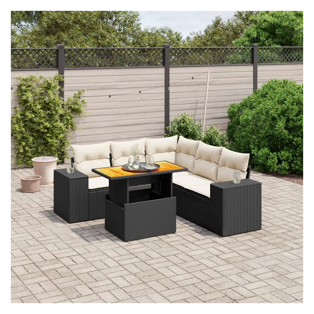 Cet ensemble de canapés de jardin est le complément parfait de votre arrière-cour, terrasse ou patio, offrant un espace confortable et accueillant pour discuter avec la famille et les amis ou simplement se détendre et profiter de l'extérieur. Matériau durable : la résine tressée, également connue sous le nom de poly rotin, est un matériau synthétique solide et nécessitant peu d'entretien qui ressemble au rotin naturel. Il est léger, facile à nettoyer et couramment utilisé pour les meubles d'extérieur en raison de sa durabilité et de ses propriétés de résistance aux intempéries.Dessus de table réglable : le dessus de table peut être soulevé pour rendre la table plus haute, ce qui transforme la table d'extérieur d'une table basse à une table de salle à manger. Elle est parfaite pour recevoir des invités ou prendre des repas à l'extérieur.Expérience d'assise confortable : ce mobilier d'extérieur, doté de coussins épais, offre une expérience d'assise confortable.Housse amovible et lavable : ces coussins de siège sont dotés de housses amovibles pour un lavage et un entretien faciles.Conception modulaire : cet ensemble de meubles d'extérieur a une conception modulaire, ce qui le rend complètement flexible et facile à déplacer, afin que vous puissiez créer un agencement de meubles d'extérieur personnalisé. Bon à savoir :Pour que vos meubles d'extérieur restent beaux, nous vous recommandons de les protéger avec une housse imperméable.