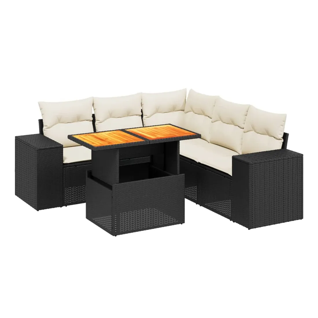 Salon de jardin 6 pcs avec coussins noir résine tressée