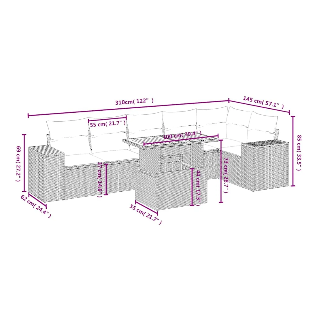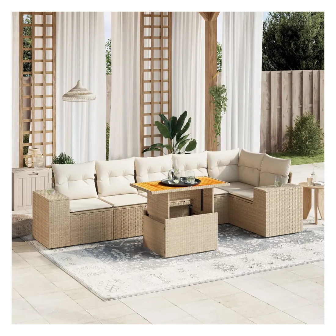 Salon de jardin avec coussins 7 pcs beige résine tressée