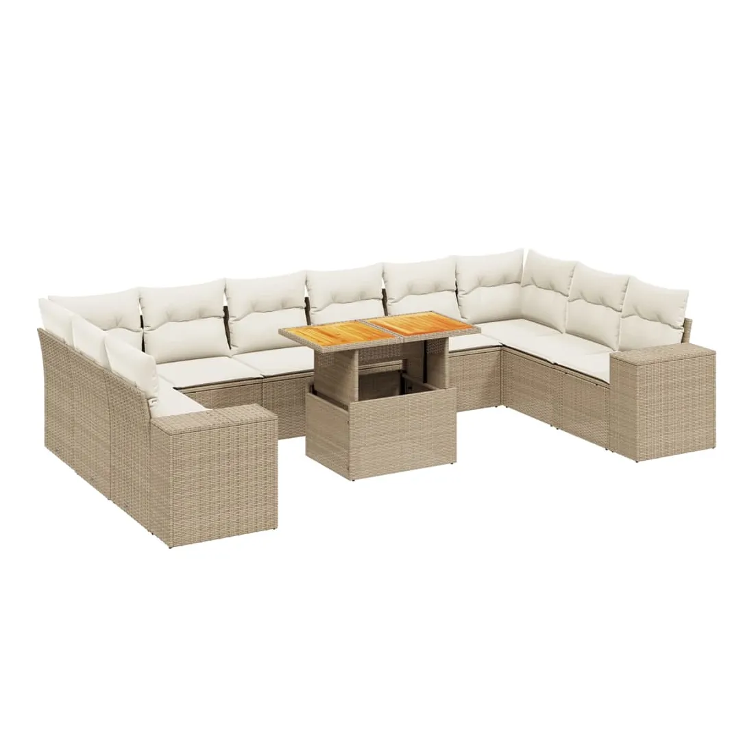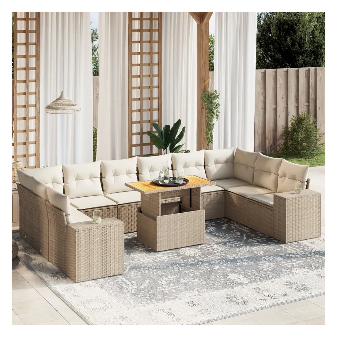 Cet ensemble de canapés de jardin est le complément parfait de votre arrière-cour, terrasse ou patio, offrant un espace confortable et accueillant pour discuter avec la famille et les amis ou simplement se détendre et profiter de l'extérieur. Matériau durable : la résine tressée, également connue sous le nom de poly rotin, est un matériau synthétique solide et nécessitant peu d'entretien qui ressemble au rotin naturel. Il est léger, facile à nettoyer et couramment utilisé pour les meubles d'extérieur en raison de sa durabilité et de ses propriétés de résistance aux intempéries.Dessus de table réglable : le dessus de table peut être soulevé pour rendre la table plus haute, ce qui transforme la table d'extérieur d'une table basse à une table de salle à manger. Elle est parfaite pour recevoir des invités ou prendre des repas à l'extérieur.Expérience d'assise confortable : ce mobilier d'extérieur, doté de coussins épais, offre une expérience d'assise confortable.Housse amovible et lavable : ces coussins de siège sont dotés de housses amovibles pour un lavage et un entretien faciles.Conception modulaire : cet ensemble de meubles d'extérieur a une conception modulaire, ce qui le rend complètement flexible et facile à déplacer, afin que vous puissiez créer un agencement de meubles d'extérieur personnalisé. Bon à savoir :Pour que vos meubles d'extérieur restent beaux, nous vous recommandons de les protéger avec une housse imperméable.