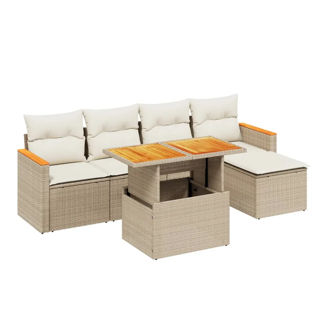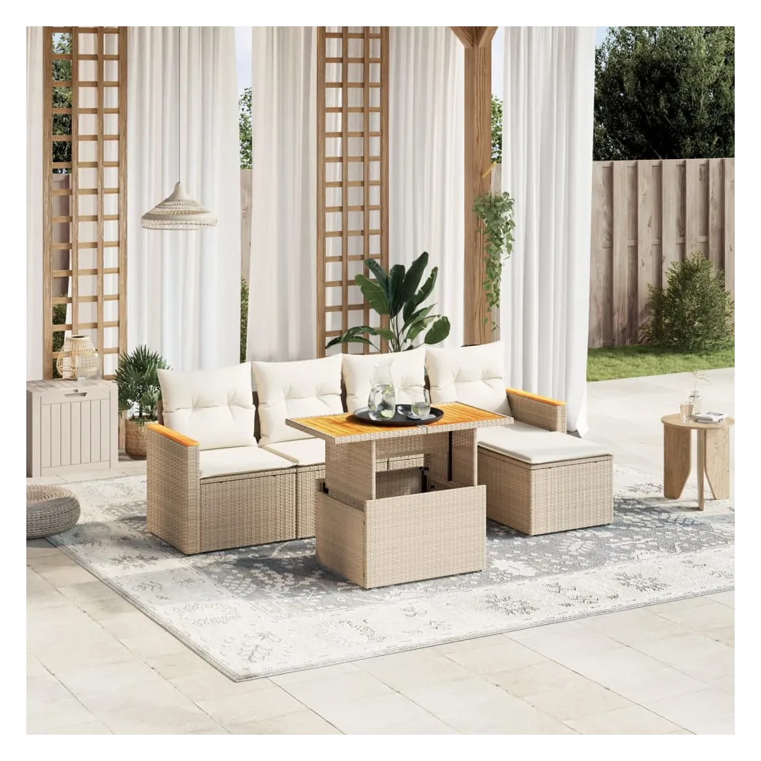Cet ensemble de canapés de jardin est le complément parfait de votre arrière-cour, terrasse ou patio, offrant un espace confortable et accueillant pour discuter avec la famille et les amis ou simplement se détendre et profiter de l'extérieur. Matériau durable : la résine tressée, également connue sous le nom de poly rotin, est un matériau synthétique solide et nécessitant peu d'entretien qui ressemble au rotin naturel. Il est léger, facile à nettoyer et couramment utilisé pour les meubles d'extérieur en raison de sa durabilité et de ses propriétés de résistance aux intempéries.Dessus de table réglable : le dessus de table peut être soulevé pour rendre la table plus haute, ce qui transforme la table d'extérieur d'une table basse à une table de salle à manger. Elle est parfaite pour recevoir des invités ou prendre des repas à l'extérieur.Expérience d'assise confortable : ce mobilier d'extérieur, doté de coussins épais, offre une expérience d'assise confortable.Housse amovible et lavable : ces coussins de siège sont dotés de housses amovibles pour un lavage et un entretien faciles.Conception modulaire : cet ensemble de meubles d'extérieur a une conception modulaire, ce qui le rend complètement flexible et facile à déplacer, afin que vous puissiez créer un agencement de meubles d'extérieur personnalisé. Bon à savoir :Pour que vos meubles d'extérieur restent beaux, nous vous recommandons de les protéger avec une housse imperméable.