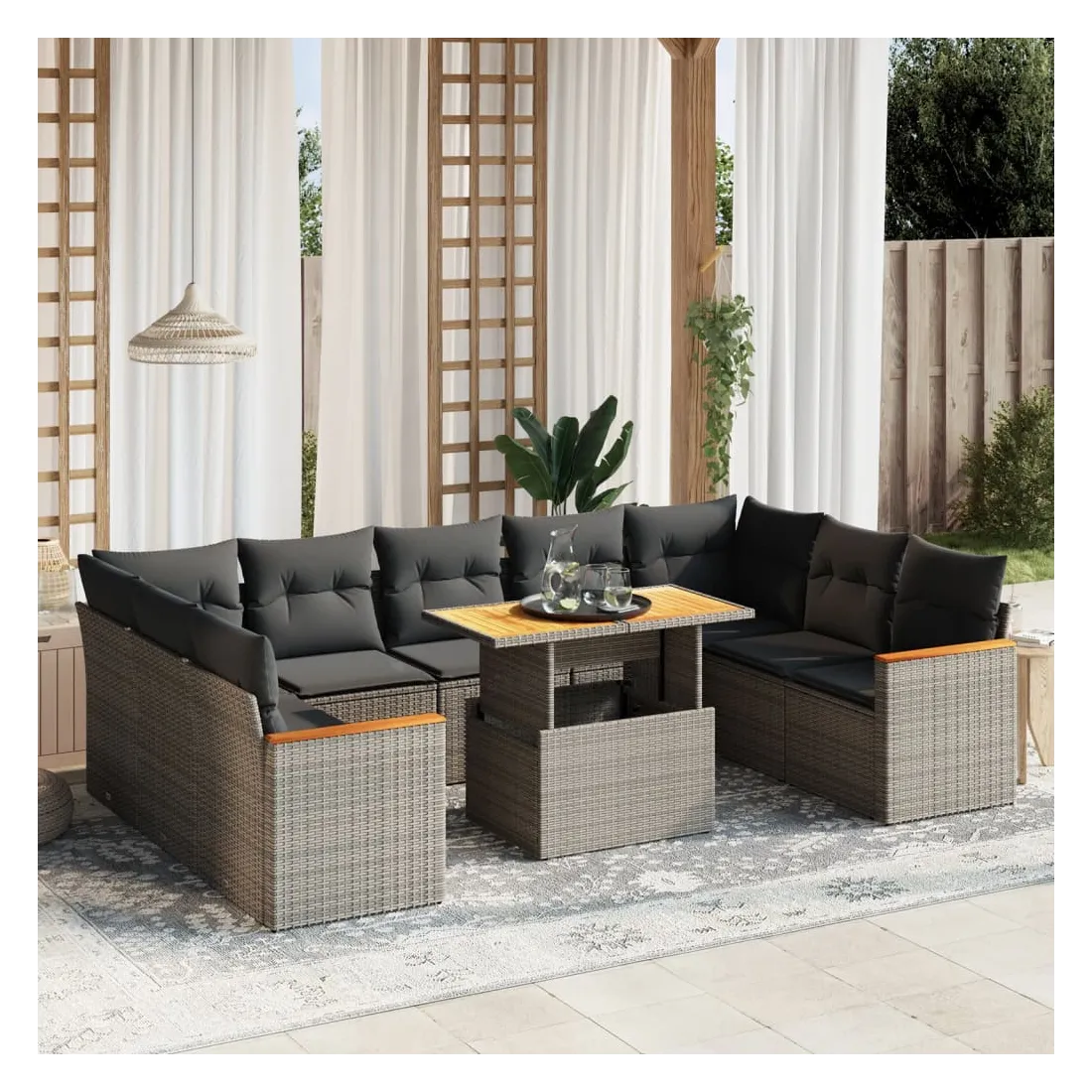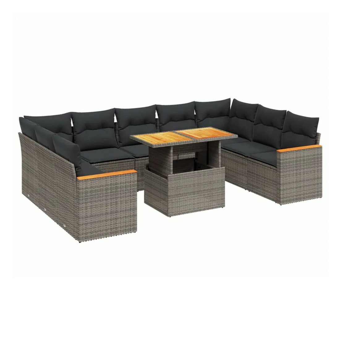 Salon de jardin avec coussins 10 pcs gris résine tressée
