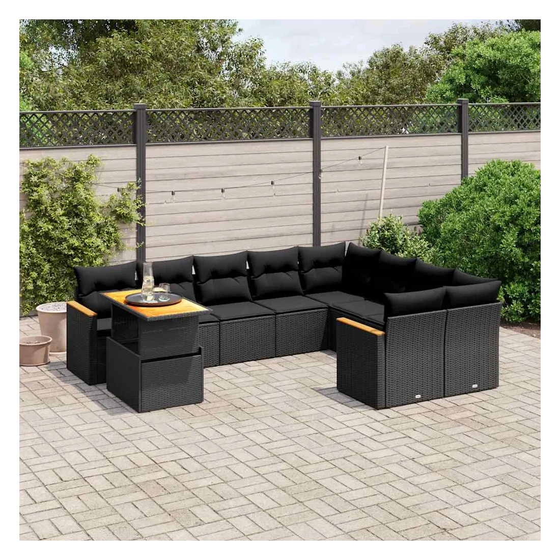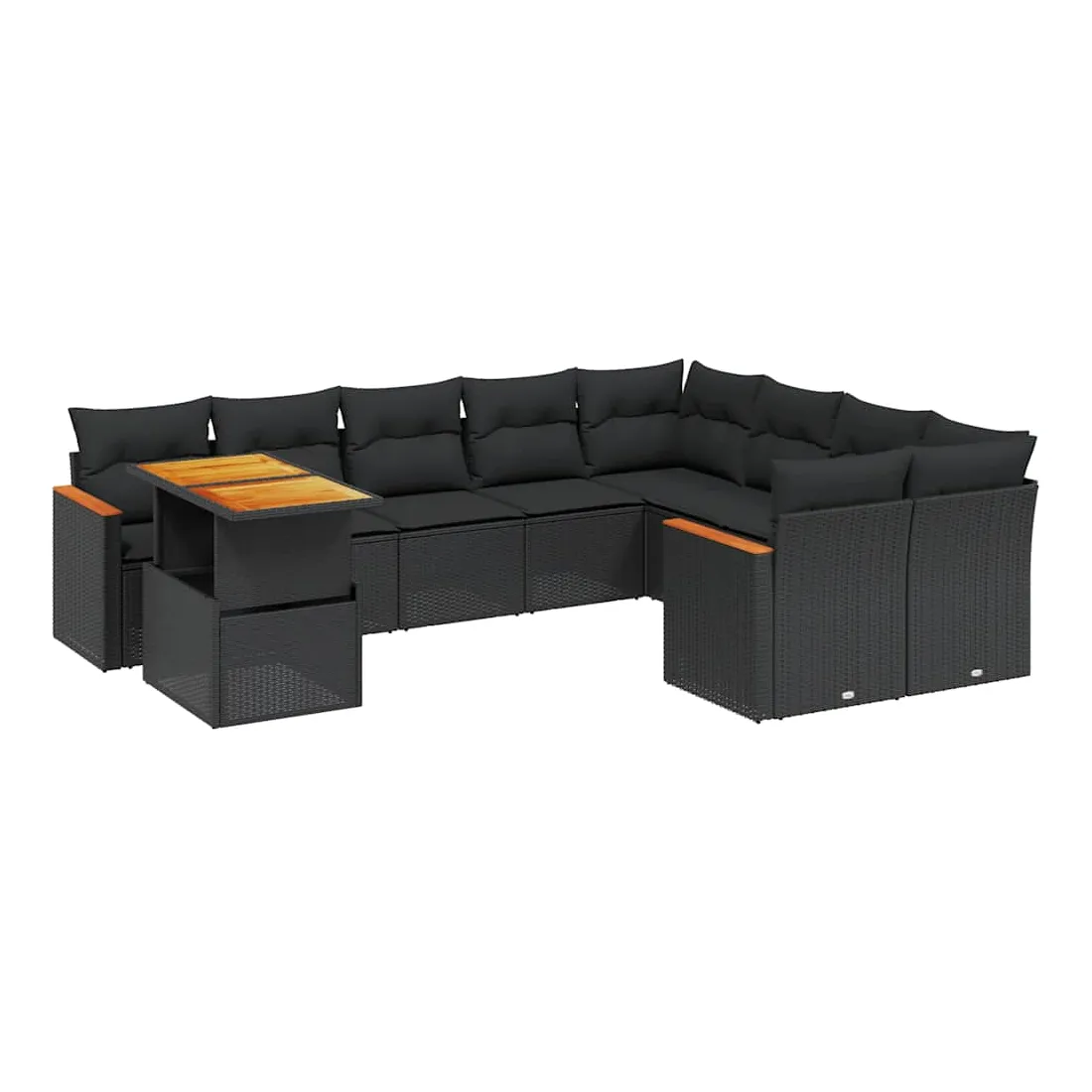 Salon de jardin 10 pcs avec coussins noir résine tressée