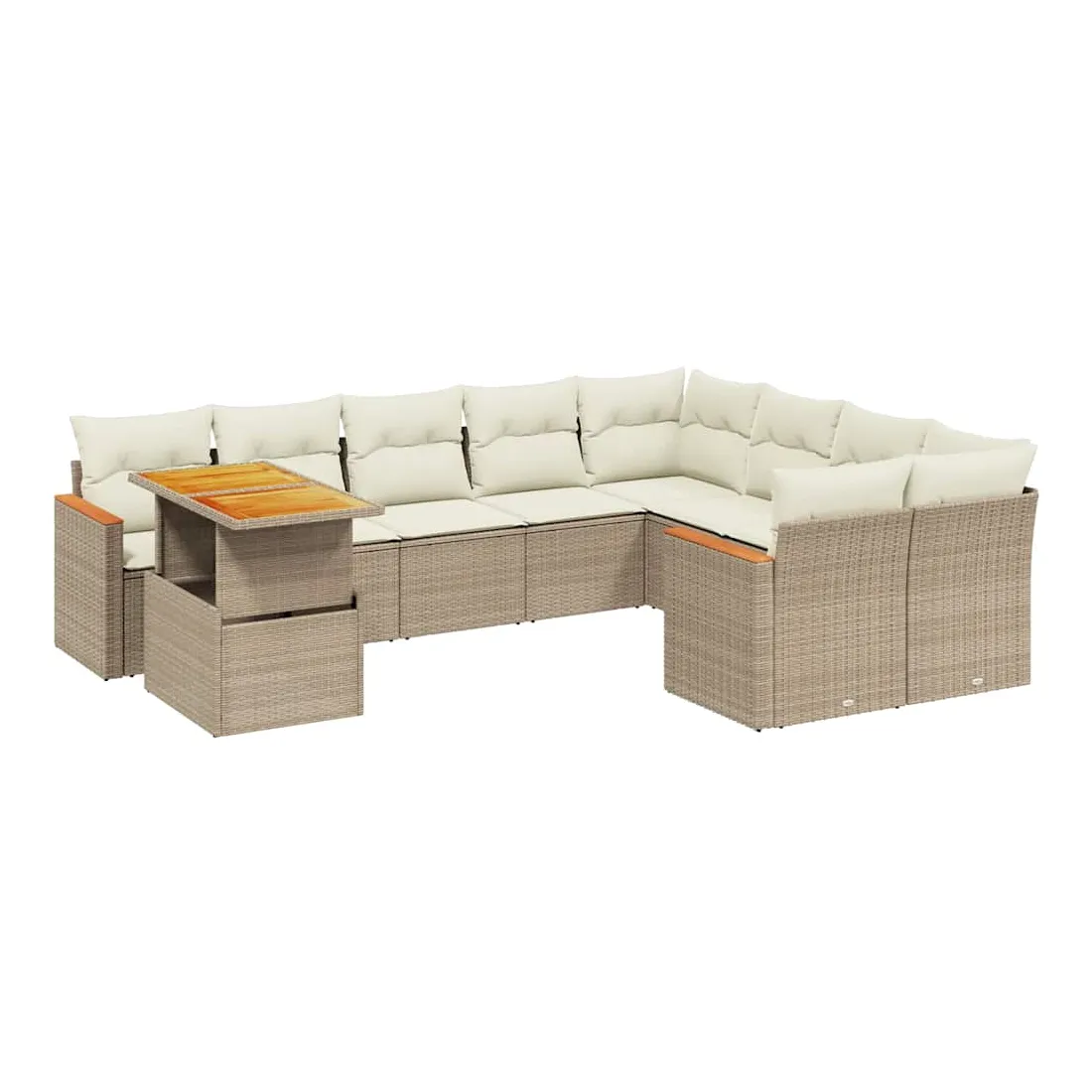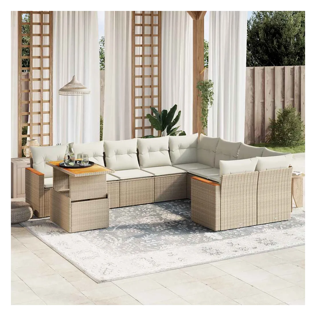 Cet ensemble de canapés de jardin est le complément parfait de votre arrière-cour, terrasse ou patio, offrant un espace confortable et accueillant pour discuter avec la famille et les amis ou simplement se détendre et profiter de l'extérieur. Matériau durable : la résine tressée, également connue sous le nom de poly rotin, est un matériau synthétique solide et nécessitant peu d'entretien qui ressemble au rotin naturel. Il est léger, facile à nettoyer et couramment utilisé pour les meubles d'extérieur en raison de sa durabilité et de ses propriétés de résistance aux intempéries.Dessus de table réglable : le dessus de table peut être soulevé pour rendre la table plus haute, ce qui transforme la table d'extérieur d'une table basse à une table de salle à manger. Elle est parfaite pour recevoir des invités ou prendre des repas à l'extérieur.Expérience d'assise confortable : ce mobilier d'extérieur, doté de coussins épais, offre une expérience d'assise confortable.Housse amovible et lavable : ces coussins de siège sont dotés de housses amovibles pour un lavage et un entretien faciles.Conception modulaire : cet ensemble de meubles d'extérieur a une conception modulaire, ce qui le rend complètement flexible et facile à déplacer, afin que vous puissiez créer un agencement de meubles d'extérieur personnalisé. Bon à savoir :Pour que vos meubles d'extérieur restent beaux, nous vous recommandons de les protéger avec une housse imperméable.
