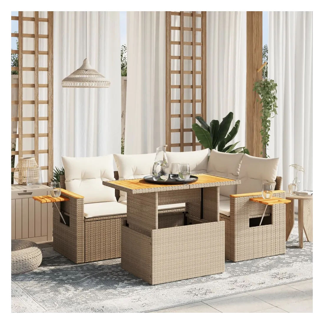 Cet ensemble de canapés de jardin est le complément parfait de votre arrière-cour, terrasse ou patio, offrant un espace confortable et accueillant pour discuter avec la famille et les amis ou simplement se détendre et profiter de l'extérieur. Matériau durable : la résine tressée, également connue sous le nom de poly rotin, est un matériau synthétique solide et nécessitant peu d'entretien qui ressemble au rotin naturel. Il est léger, facile à nettoyer et couramment utilisé pour les meubles d'extérieur en raison de sa durabilité et de ses propriétés de résistance aux intempéries.Dessus de table réglable : le dessus de table peut être soulevé pour rendre la table plus haute, ce qui transforme la table d'extérieur d'une table basse à une table de salle à manger. Elle est parfaite pour recevoir des invités ou prendre des repas à l'extérieur.Table d'appoint pratique : ce mobilier d'extérieur comprend une table d'appoint pliable avec un ressort à gaz sur les accoudoirs, offrant un endroit pratique pour garder vos essentiels à portée de main.Housse amovible et lavable : ces coussins de siège sont dotés de housses amovibles pour un lavage et un entretien faciles.Conception modulaire : cet ensemble de meubles d'extérieur a une conception modulaire, ce qui le rend complètement flexible et facile à déplacer, afin que vous puissiez créer un agencement de meubles d'extérieur personnalisé. Bon à savoir :Pour que vos meubles d'extérieur restent beaux, nous vous recommandons de les protéger avec une housse imperméable.