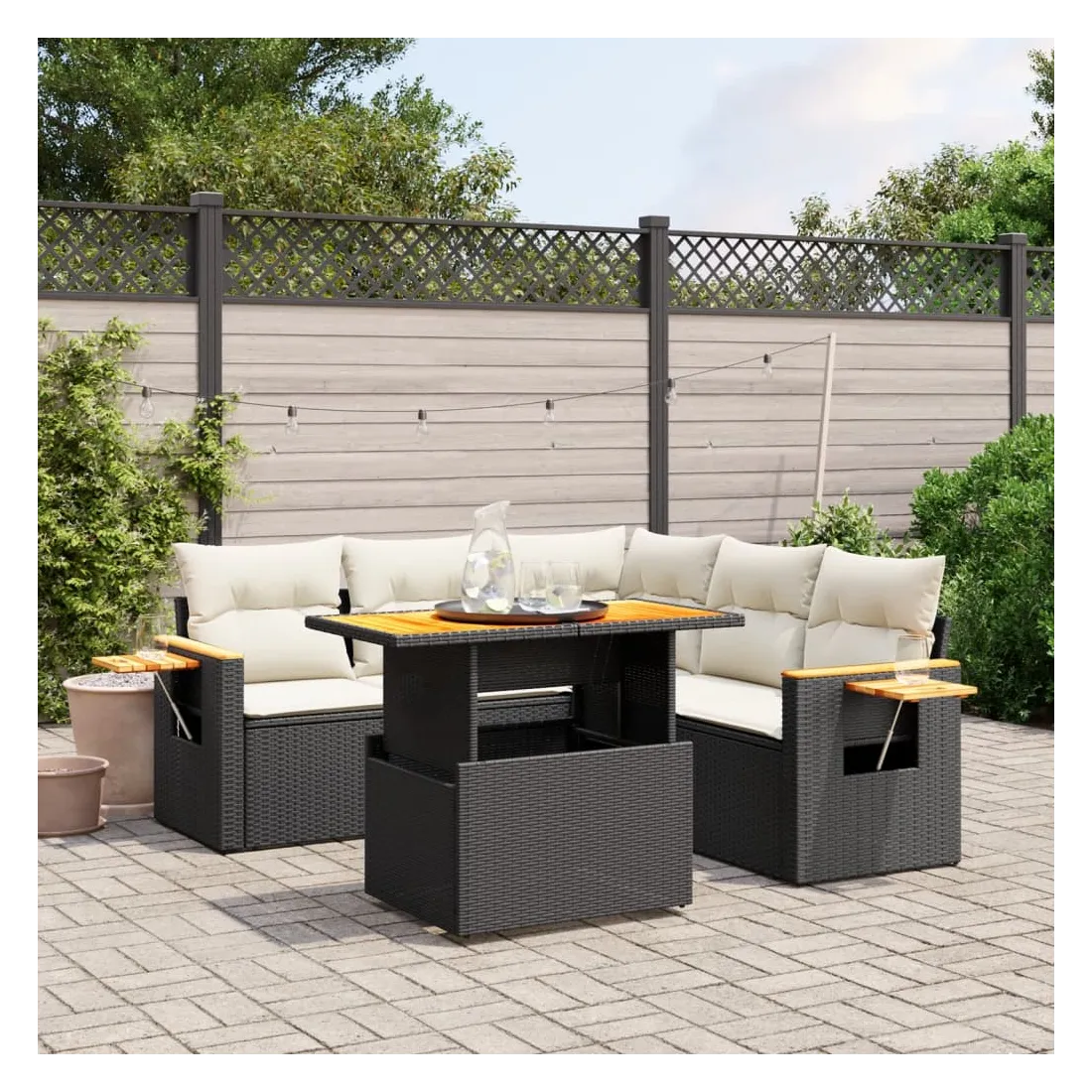 Cet ensemble de canapés de jardin est le complément parfait de votre arrière-cour, terrasse ou patio, offrant un espace confortable et accueillant pour discuter avec la famille et les amis ou simplement se détendre et profiter de l'extérieur. Matériau durable : la résine tressée, également connue sous le nom de poly rotin, est un matériau synthétique solide et nécessitant peu d'entretien qui ressemble au rotin naturel. Il est léger, facile à nettoyer et couramment utilisé pour les meubles d'extérieur en raison de sa durabilité et de ses propriétés de résistance aux intempéries.Dessus de table réglable : le dessus de table peut être soulevé pour rendre la table plus haute, ce qui transforme la table d'extérieur d'une table basse à une table de salle à manger. Elle est parfaite pour recevoir des invités ou prendre des repas à l'extérieur.Table d'appoint pratique : ce mobilier d'extérieur comprend une table d'appoint pliable avec un ressort à gaz sur les accoudoirs, offrant un endroit pratique pour garder vos essentiels à portée de main.Housse amovible et lavable : ces coussins de siège sont dotés de housses amovibles pour un lavage et un entretien faciles.Conception modulaire : cet ensemble de meubles d'extérieur a une conception modulaire, ce qui le rend complètement flexible et facile à déplacer, afin que vous puissiez créer un agencement de meubles d'extérieur personnalisé. Bon à savoir :Pour que vos meubles d'extérieur restent beaux, nous vous recommandons de les protéger avec une housse imperméable.