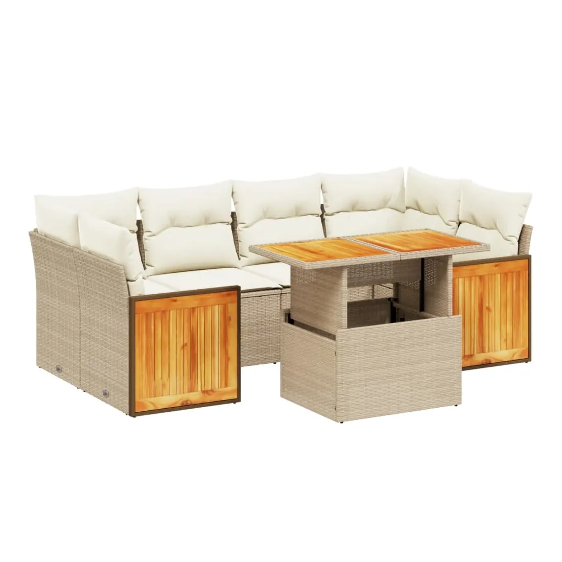 Cet ensemble de canapés de jardin est le complément parfait de votre arrière-cour, terrasse ou patio, offrant un espace confortable et accueillant pour discuter avec la famille et les amis ou simplement se détendre et profiter de l'extérieur. Matériau durable : la résine tressée, également connue sous le nom de poly rotin, est un matériau synthétique solide et nécessitant peu d'entretien qui ressemble au rotin naturel. Il est léger, facile à nettoyer et couramment utilisé pour les meubles d'extérieur en raison de sa durabilité et de ses propriétés de résistance aux intempéries.Dessus de table réglable : le dessus de table peut être soulevé pour rendre la table plus haute, ce qui transforme la table d'extérieur d'une table basse à une table de salle à manger. Elle est parfaite pour recevoir des invités ou prendre des repas à l'extérieur.Housse amovible et lavable : ces coussins de siège sont dotés de housses amovibles pour un lavage et un entretien faciles.Conception modulaire : cet ensemble de meubles d'extérieur a une conception modulaire, ce qui le rend complètement flexible et facile à déplacer, afin que vous puissiez créer un agencement de meubles d'extérieur personnalisé. Bon à savoir :Pour que vos meubles d'extérieur restent beaux, nous vous recommandons de les protéger avec une housse imperméable.