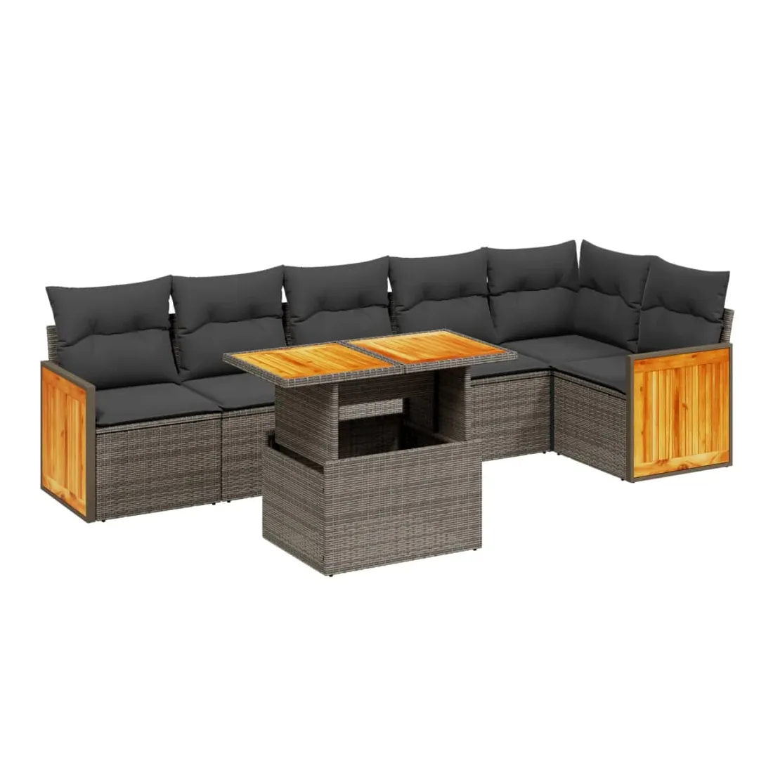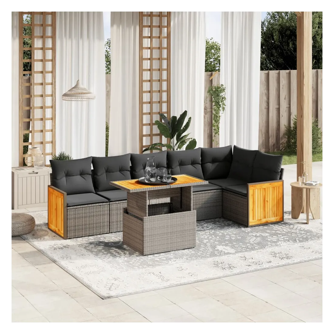 Cet ensemble de canapés de jardin est le complément parfait de votre arrière-cour, terrasse ou patio, offrant un espace confortable et accueillant pour discuter avec la famille et les amis ou simplement se détendre et profiter de l'extérieur. Matériau durable : la résine tressée, également connue sous le nom de poly rotin, est un matériau synthétique solide et nécessitant peu d'entretien qui ressemble au rotin naturel. Il est léger, facile à nettoyer et couramment utilisé pour les meubles d'extérieur en raison de sa durabilité et de ses propriétés de résistance aux intempéries.Dessus de table réglable : le dessus de table peut être soulevé pour rendre la table plus haute, ce qui transforme la table d'extérieur d'une table basse à une table de salle à manger. Elle est parfaite pour recevoir des invités ou prendre des repas à l'extérieur.Housse amovible et lavable : ces coussins de siège sont dotés de housses amovibles pour un lavage et un entretien faciles.Conception modulaire : cet ensemble de meubles d'extérieur a une conception modulaire, ce qui le rend complètement flexible et facile à déplacer, afin que vous puissiez créer un agencement de meubles d'extérieur personnalisé. Bon à savoir :Pour que vos meubles d'extérieur restent beaux, nous vous recommandons de les protéger avec une housse imperméable.