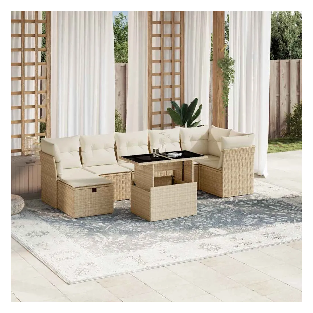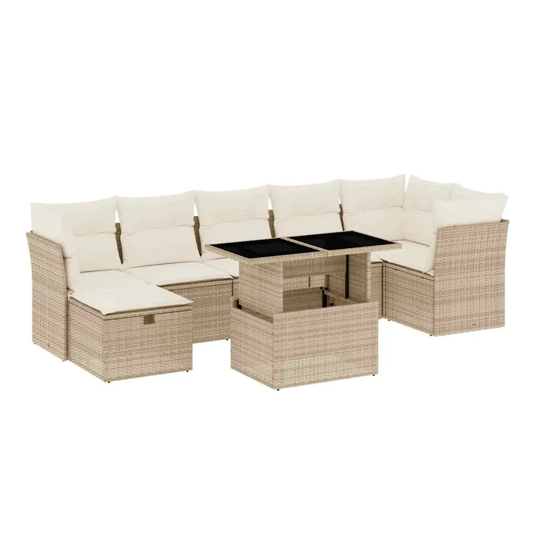 Salon de jardin avec coussins 8 pcs beige résine tressée