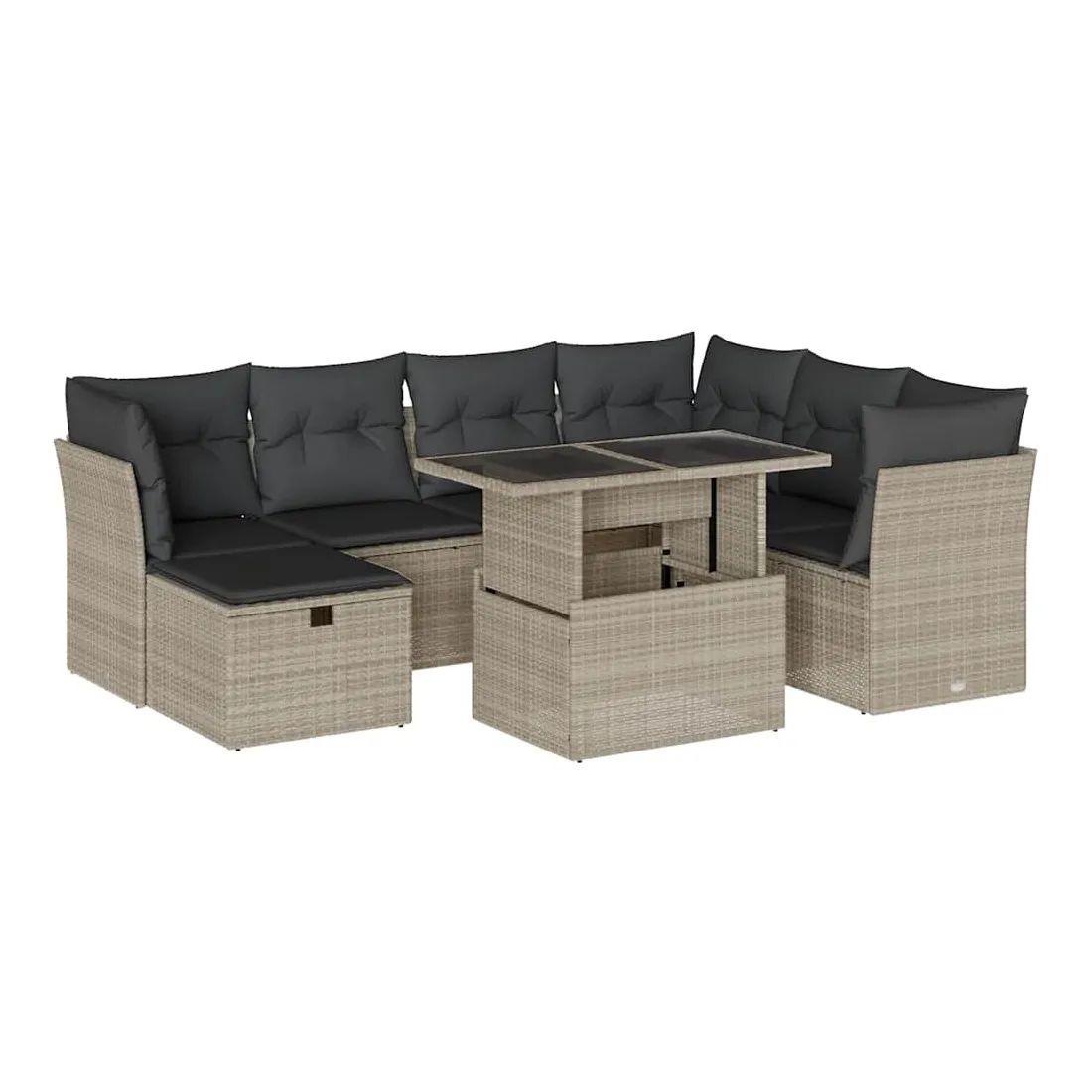 Cet ensemble de canapés de jardin est le complément parfait de votre arrière-cour, terrasse ou patio, offrant un espace confortable et accueillant pour discuter avec la famille et les amis ou simplement se détendre et profiter de l'extérieur. Matériau durable : la résine tressée, également connue sous le nom de poly rotin, est un matériau synthétique solide et nécessitant peu d'entretien qui ressemble au rotin naturel. Elle est légère, facile à nettoyer et couramment utilisée pour les meubles d'extérieur en raison de sa durabilité et de ses propriétés de résistance aux intempéries.Dessus de table réglable : le dessus de table peut être soulevé pour rendre la table plus haute, ce qui transforme la table d'extérieur d'une table basse à une table de salle à manger. Elle est parfaite pour recevoir des invités ou prendre des repas à l'extérieur.Housse amovible et lavable : ces coussins de siège sont dotés de housses amovibles pour un lavage et un entretien faciles.Conception modulaire : cet ensemble de meubles d'extérieur a une conception modulaire, ce qui le rend complètement flexible et facile à déplacer, afin que vous puissiez créer un agencement de meubles d'extérieur personnalisé. Bon à savoir :Pour que vos meubles d'extérieur restent beaux, nous vous recommandons de les protéger avec une housse imperméable.