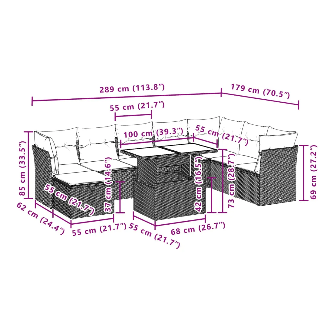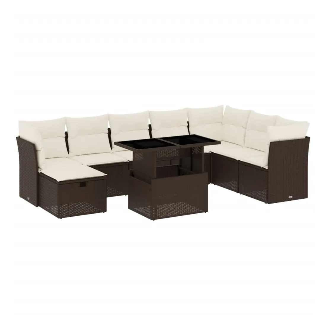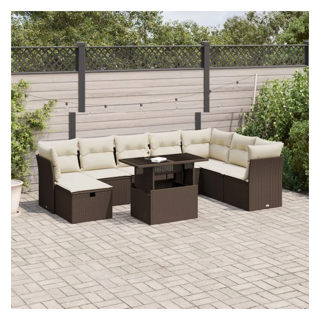 Cet ensemble de canapés de jardin est le complément parfait de votre arrière-cour, terrasse ou patio, offrant un espace confortable et accueillant pour discuter avec la famille et les amis ou simplement se détendre et profiter de l'extérieur. Matériau durable : la résine tressée, également connue sous le nom de poly rotin, est un matériau synthétique solide et nécessitant peu d'entretien qui ressemble au rotin naturel. Il est léger, facile à nettoyer et couramment utilisé pour les meubles d'extérieur en raison de sa durabilité et de ses propriétés de résistance aux intempéries.Dessus de table réglable : le dessus de table peut être soulevé pour rendre la table plus haute, ce qui transforme la table d'extérieur d'une table basse à une table de salle à manger. Elle est parfaite pour recevoir des invités ou prendre des repas à l'extérieur.Housse amovible et lavable : ces coussins de siège sont dotés de housses amovibles pour un lavage et un entretien faciles.Conception modulaire : cet ensemble de meubles d'extérieur a une conception modulaire, ce qui le rend complètement flexible et facile à déplacer, afin que vous puissiez créer un agencement de meubles d'extérieur personnalisé. Bon à savoir :Pour que vos meubles d'extérieur restent beaux, nous vous recommandons de les protéger avec une housse imperméable.