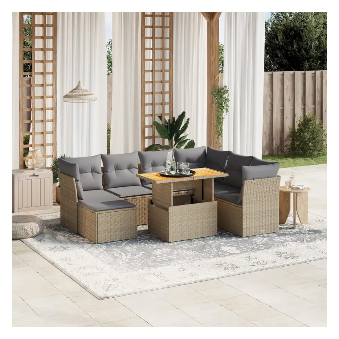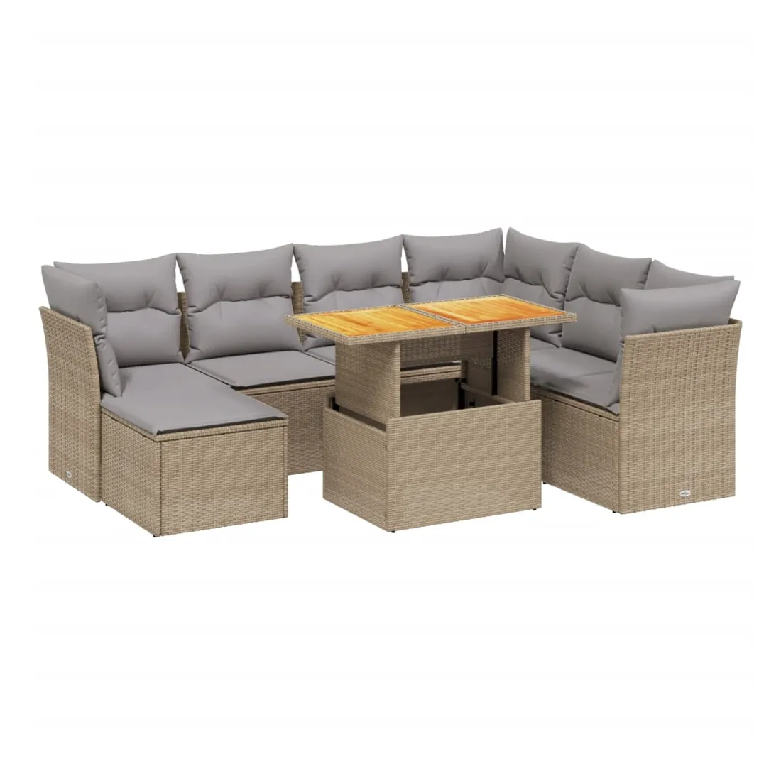 Cet ensemble de canapés de jardin est le complément parfait de votre arrière-cour, terrasse ou patio, offrant un espace confortable et accueillant pour discuter avec la famille et les amis ou simplement se détendre et profiter de l'extérieur. Matériau durable : la résine tressée, également connue sous le nom de poly rotin, est un matériau synthétique solide et nécessitant peu d'entretien qui ressemble au rotin naturel. Il est léger, facile à nettoyer et couramment utilisé pour les meubles d'extérieur en raison de sa durabilité et de ses propriétés de résistance aux intempéries.Dessus de table réglable : le dessus de table peut être soulevé pour rendre la table plus haute, ce qui transforme la table d'extérieur d'une table basse à une table de salle à manger. Elle est parfaite pour recevoir des invités ou prendre des repas à l'extérieur.Housse amovible et lavable : ces coussins de siège sont dotés de housses amovibles pour un lavage et un entretien faciles.Conception modulaire : cet ensemble de meubles d'extérieur a une conception modulaire, ce qui le rend complètement flexible et facile à déplacer, afin que vous puissiez créer un agencement de meubles d'extérieur personnalisé. Bon à savoir :Pour que vos meubles d'extérieur restent beaux, nous vous recommandons de les protéger avec une housse imperméable.