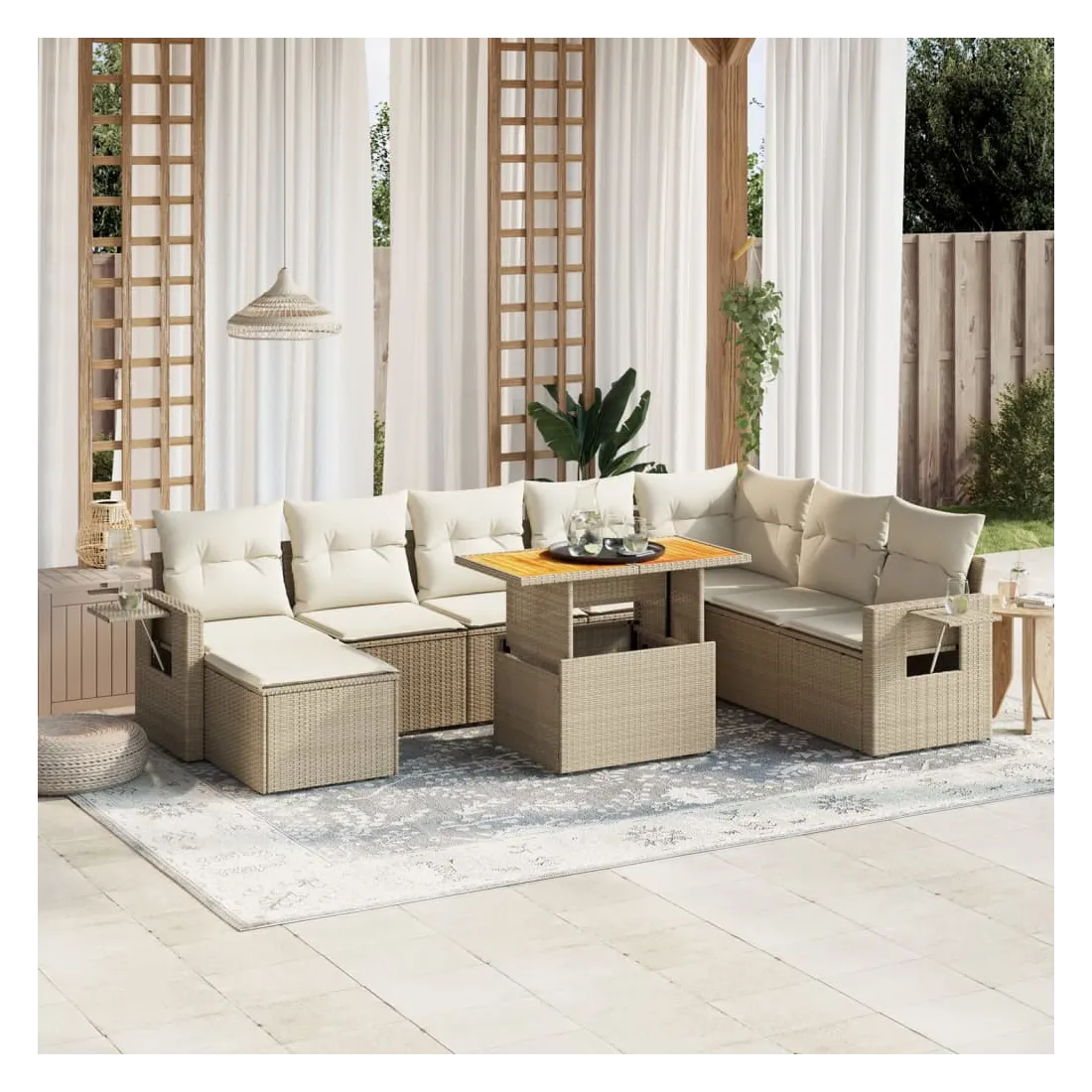 Cet ensemble de canapés de jardin est le complément parfait de votre arrière-cour, terrasse ou patio, offrant un espace confortable et accueillant pour discuter avec la famille et les amis ou simplement se détendre et profiter de l'extérieur. Matériau durable : la résine tressée, également connue sous le nom de poly rotin, est un matériau synthétique solide et nécessitant peu d'entretien qui ressemble au rotin naturel. Il est léger, facile à nettoyer et couramment utilisé pour les meubles d'extérieur en raison de sa durabilité et de ses propriétés de résistance aux intempéries.Dessus de table réglable : le dessus de table peut être soulevé pour rendre la table plus haute, ce qui transforme la table d'extérieur d'une table basse à une table de salle à manger. Elle est parfaite pour recevoir des invités ou prendre des repas à l'extérieur.Housse amovible et lavable : ces coussins de siège sont dotés de housses amovibles pour un lavage et un entretien faciles.Conception modulaire : cet ensemble de meubles d'extérieur a une conception modulaire, ce qui le rend complètement flexible et facile à déplacer, afin que vous puissiez créer un agencement de meubles d'extérieur personnalisé. Bon à savoir :Pour que vos meubles d'extérieur restent beaux, nous vous recommandons de les protéger avec une housse imperméable.