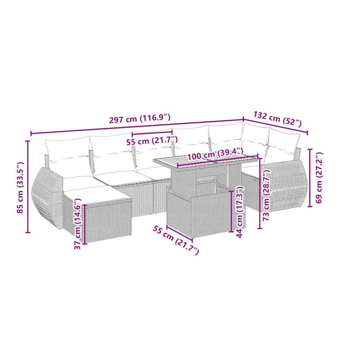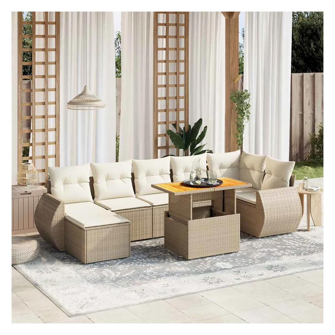 Cet ensemble de canapés de jardin est le complément parfait de votre arrière-cour, terrasse ou patio, offrant un espace confortable et accueillant pour discuter avec la famille et les amis ou simplement se détendre et profiter de l'extérieur. Matériau durable : la résine tressée, également connue sous le nom de poly rotin, est un matériau synthétique solide et nécessitant peu d'entretien qui ressemble au rotin naturel. Il est léger, facile à nettoyer et couramment utilisé pour les meubles d'extérieur en raison de sa durabilité et de ses propriétés de résistance aux intempéries.Dessus de table réglable : le dessus de table peut être soulevé pour rendre la table plus haute, ce qui transforme la table d'extérieur d'une table basse à une table de salle à manger. Elle est parfaite pour recevoir des invités ou prendre des repas à l'extérieur.Housse amovible et lavable : ces coussins de siège sont dotés de housses amovibles pour un lavage et un entretien faciles.Conception modulaire : cet ensemble de meubles d'extérieur a une conception modulaire, ce qui le rend complètement flexible et facile à déplacer, afin que vous puissiez créer un agencement de meubles d'extérieur personnalisé. Bon à savoir :Pour que vos meubles d'extérieur restent beaux, nous vous recommandons de les protéger avec une housse imperméable.