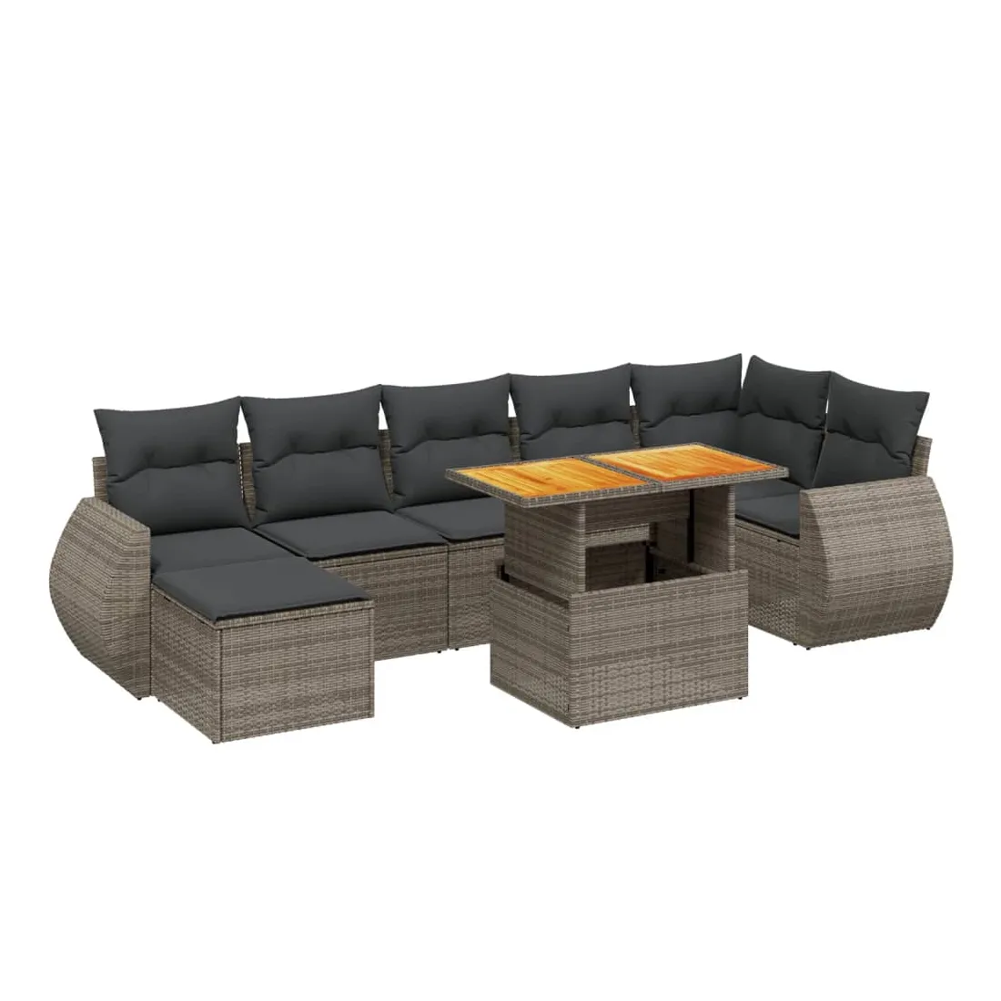 Salon de jardin 8 pcs avec coussins gris résine tressée