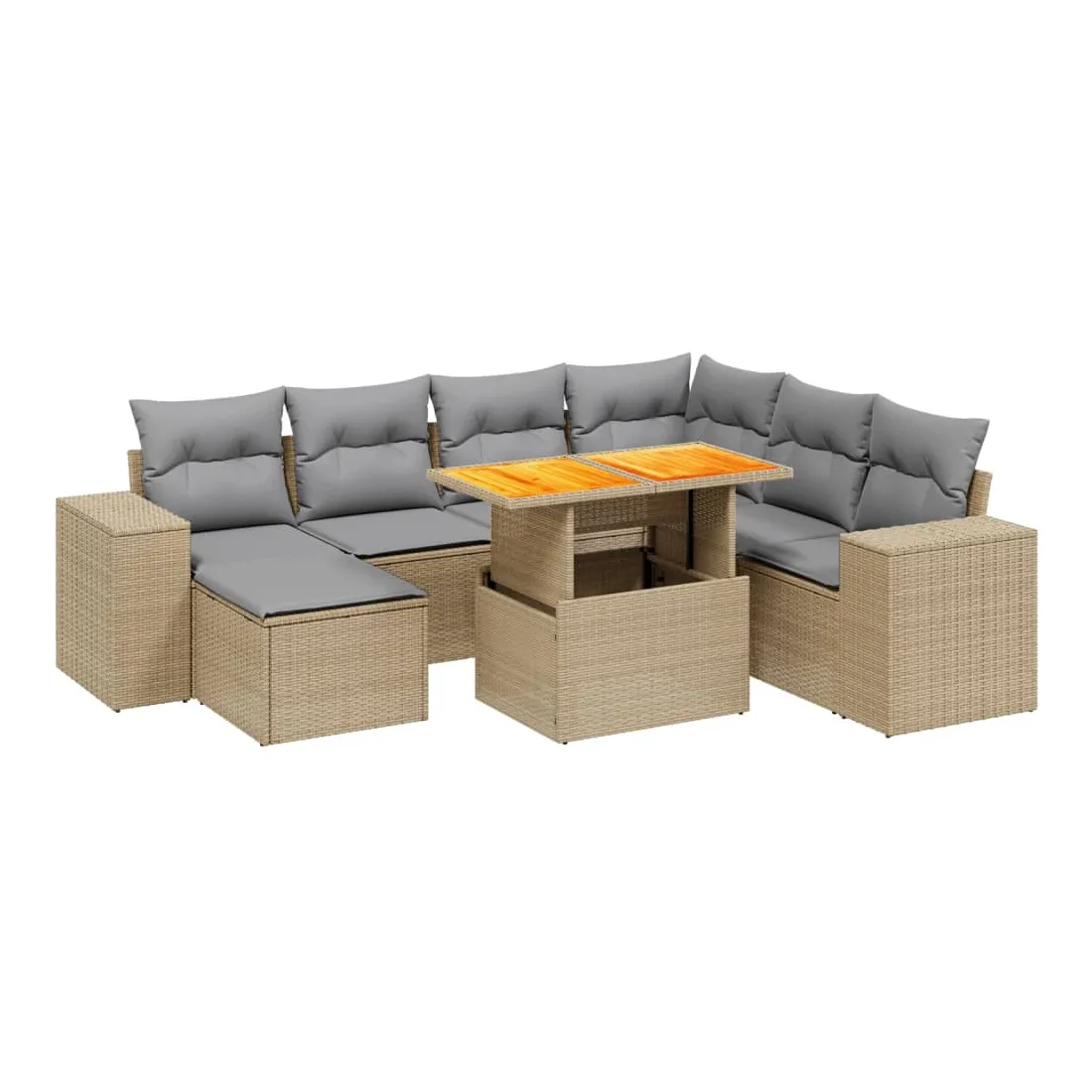 Salon de jardin avec coussins 8 pcs beige résine tressée