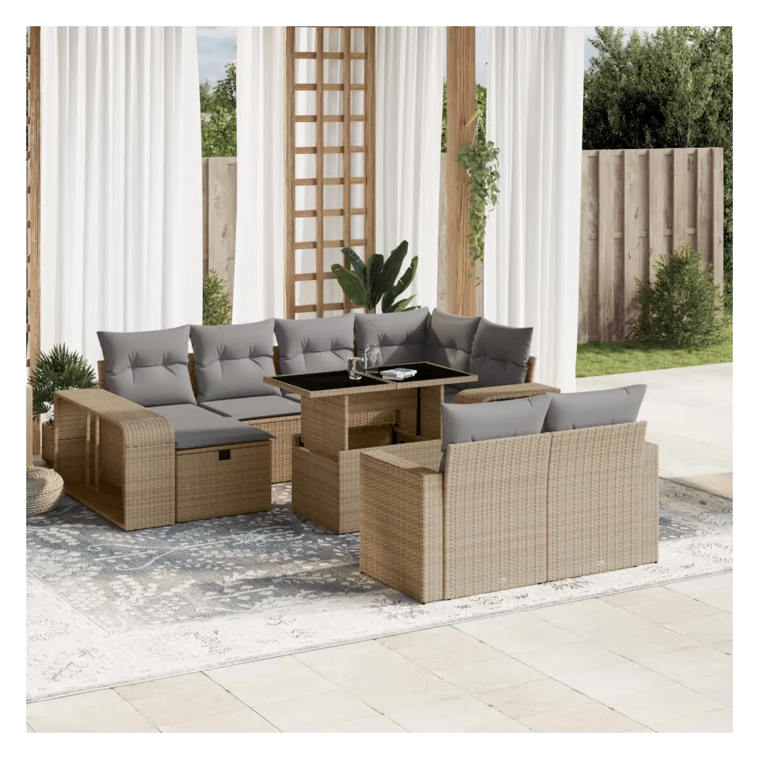 Cet ensemble de canapés de jardin est le complément parfait de votre arrière-cour, terrasse ou patio, offrant un espace confortable et accueillant pour discuter avec la famille et les amis ou simplement se détendre et profiter de l'extérieur. Matériau durable : la résine tressée, également connue sous le nom de poly rotin, est un matériau synthétique solide et nécessitant peu d'entretien qui ressemble au rotin naturel. Il est léger, facile à nettoyer et couramment utilisé pour les meubles d'extérieur en raison de sa durabilité et de ses propriétés de résistance aux intempéries. Expérience d'assise confortable : ce mobilier d'extérieur, doté de coussins épais, offre une expérience d'assise confortable. Dessus de table réglable : le dessus de table peut être soulevé pour rendre la table plus haute, ce qui transforme la table d'extérieur d'une table basse à une table de salle à manger. Elle est parfaite pour recevoir des invités ou prendre des repas à l'extérieur. Pouf polyvalent : le tabouret est polyvalent, servant de repose-pieds confortable lorsque vous vous prélassez sur le canapé ou de siège supplémentaire dans votre jardin. Conception modulaire : cet ensemble de meubles d'extérieur a une conception modulaire, ce qui le rend complètement flexible et facile à déplacer, afin que vous puissiez créer un agencement de meubles d'extérieur personnalisé. Bon à savoir :Pour que vos meubles d'extérieur restent beaux, nous vous recommandons de les protéger avec une housse imperméable.
