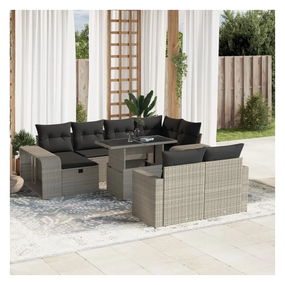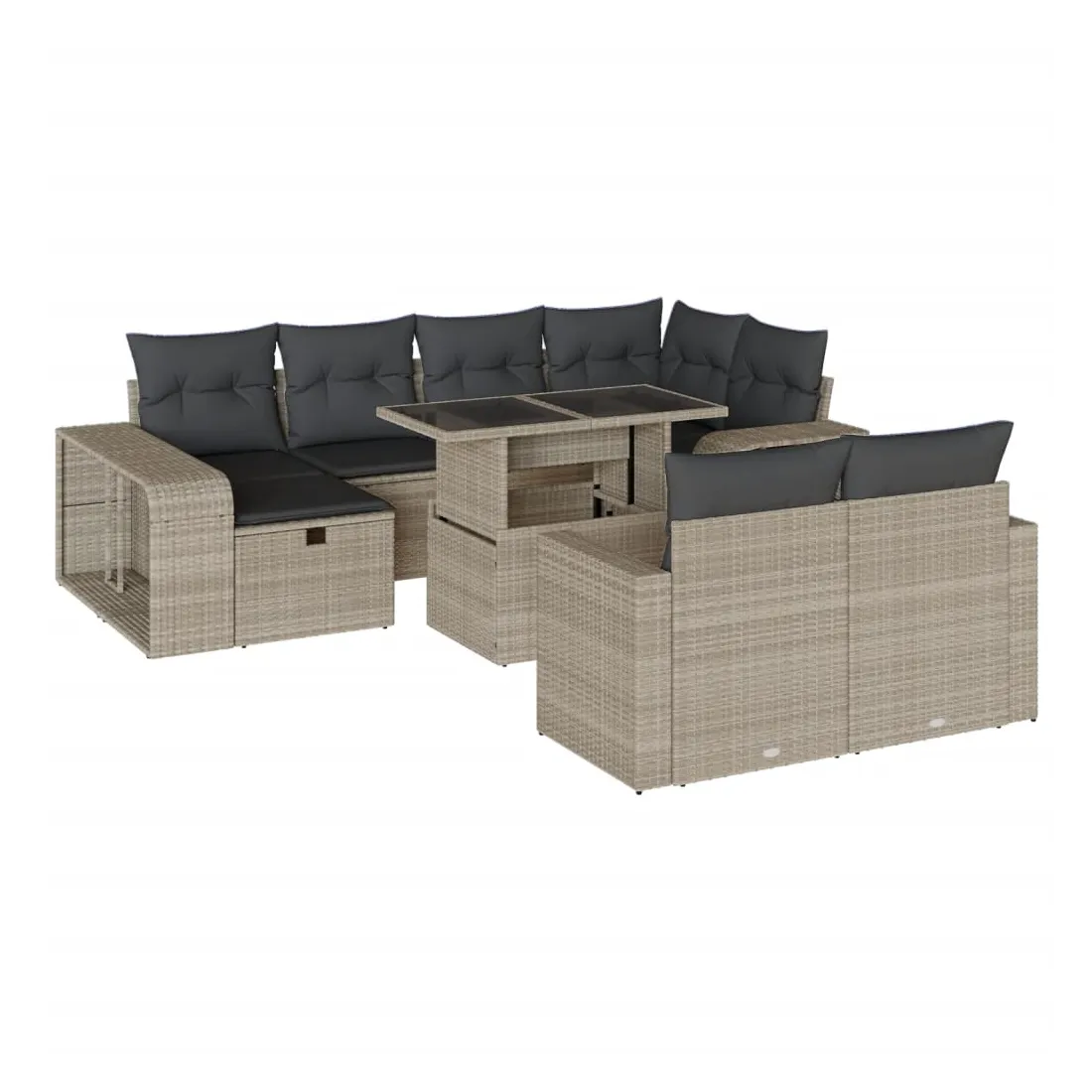 Salon de jardin 11 pcs avec coussins gris clair résine tressée