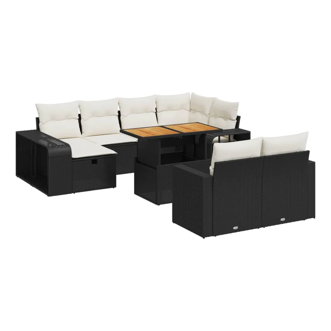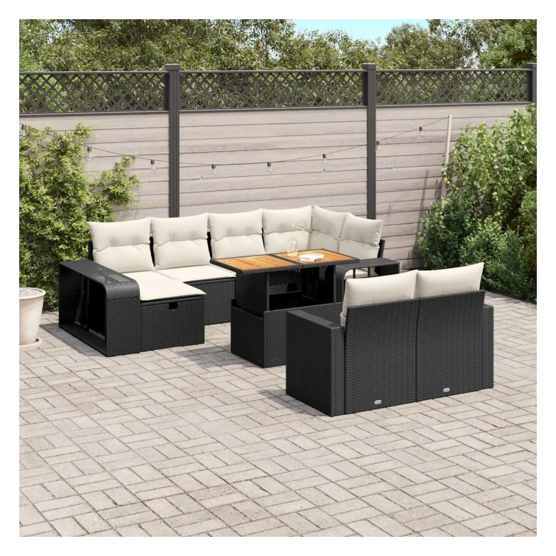 Cet ensemble de canapés de jardin est le complément parfait de votre arrière-cour, terrasse ou patio, offrant un espace confortable et accueillant pour discuter avec la famille et les amis ou simplement se détendre et profiter de l'extérieur. Matériau durable : la résine tressée, également connue sous le nom de poly rotin, est un matériau synthétique solide et nécessitant peu d'entretien qui ressemble au rotin naturel. Il est léger, facile à nettoyer et couramment utilisé pour les meubles d'extérieur en raison de sa durabilité et de ses propriétés de résistance aux intempéries.Dessus de table réglable : le dessus de table peut être soulevé pour rendre la table plus haute, ce qui transforme la table d'extérieur d'une table basse à une table de salle à manger. Elle est parfaite pour recevoir des invités ou prendre des repas à l'extérieur.Grand espace de rangement : avec un espace de rangement intégré, ce meuble d'extérieur offre un grand espace de rangement pour garder vos objets essentiels organisés et facilement accessibles.Housse amovible et lavable : ces coussins de siège sont dotés de housses amovibles pour un lavage et un entretien faciles.Conception modulaire : cet ensemble de meubles d'extérieur a une conception modulaire, ce qui le rend complètement flexible et facile à déplacer, afin que vous puissiez créer un agencement de meubles d'extérieur personnalisé. Bon à savoir :Pour que vos meubles d'extérieur restent beaux, nous vous recommandons de les protéger avec une housse imperméable.