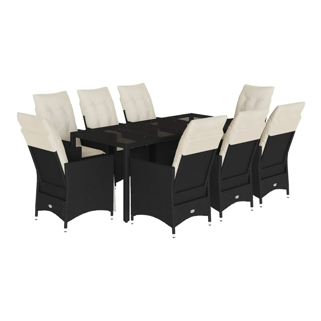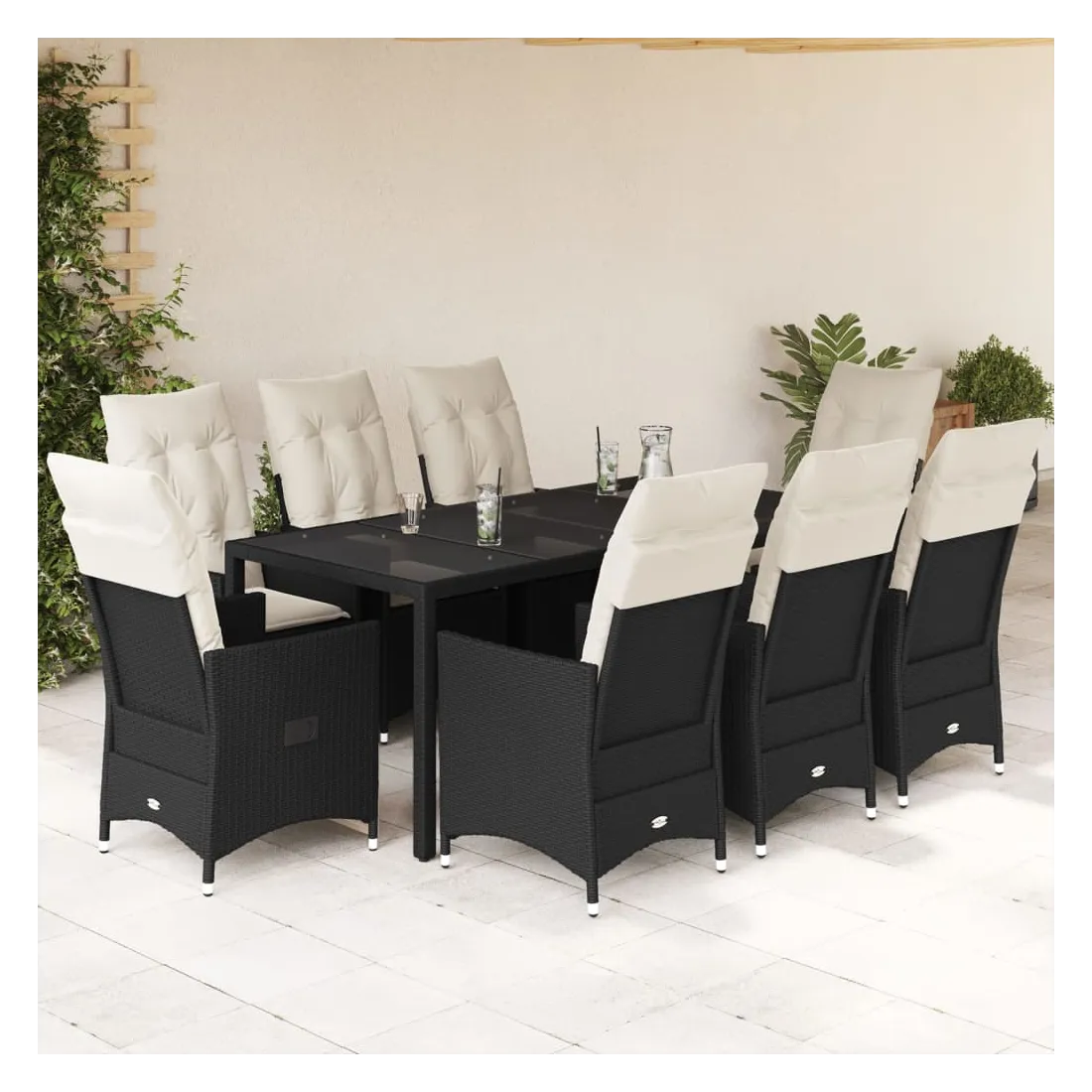 - Matériaux : Rotin PE, acier, verre trempé