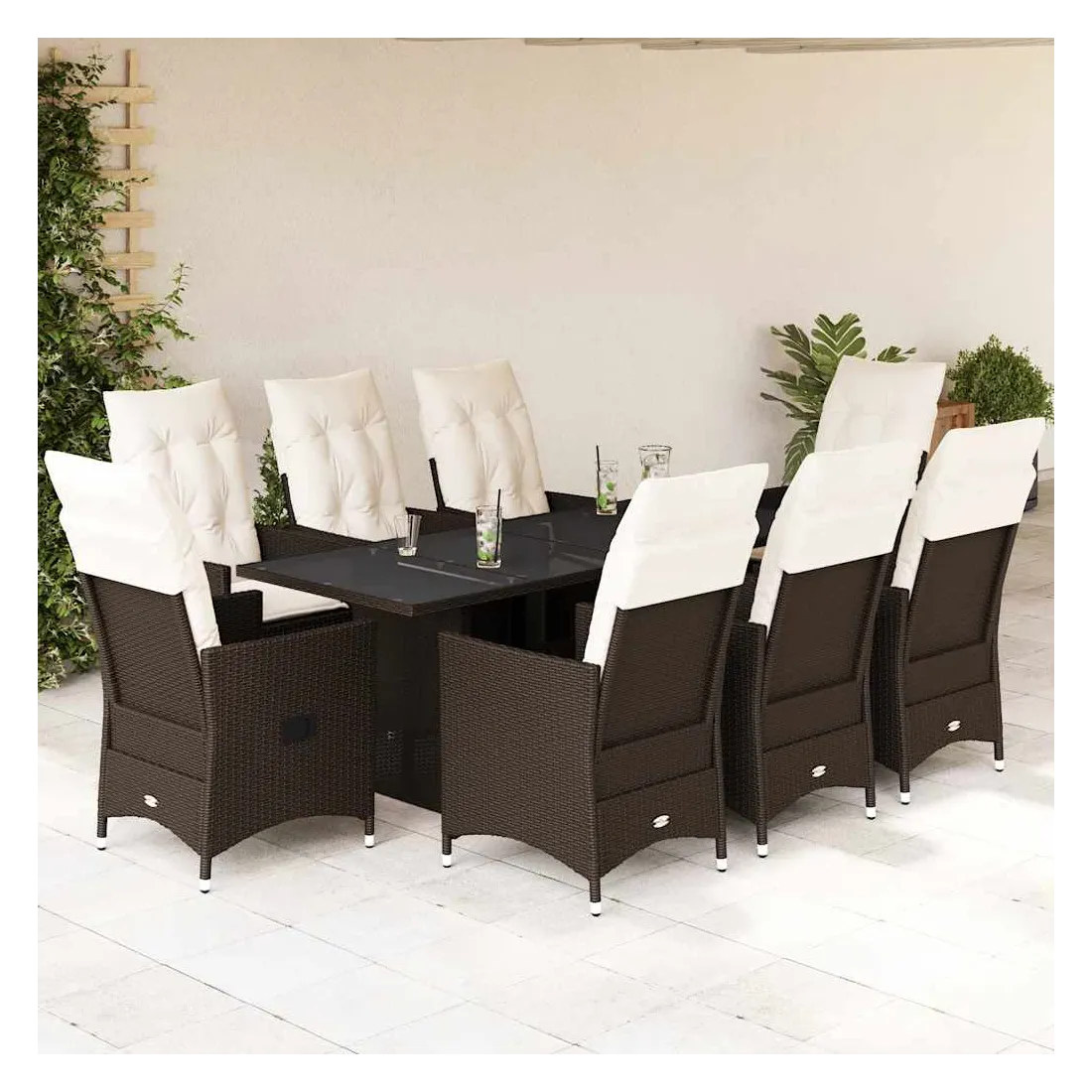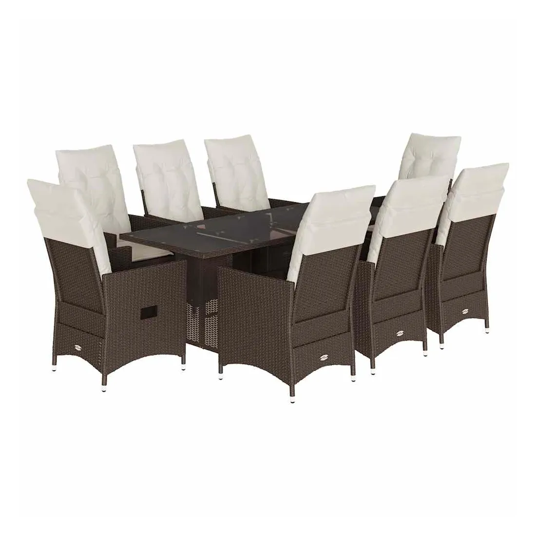 Ensemble à manger de jardin et coussins 9 pcs marron poly rotin