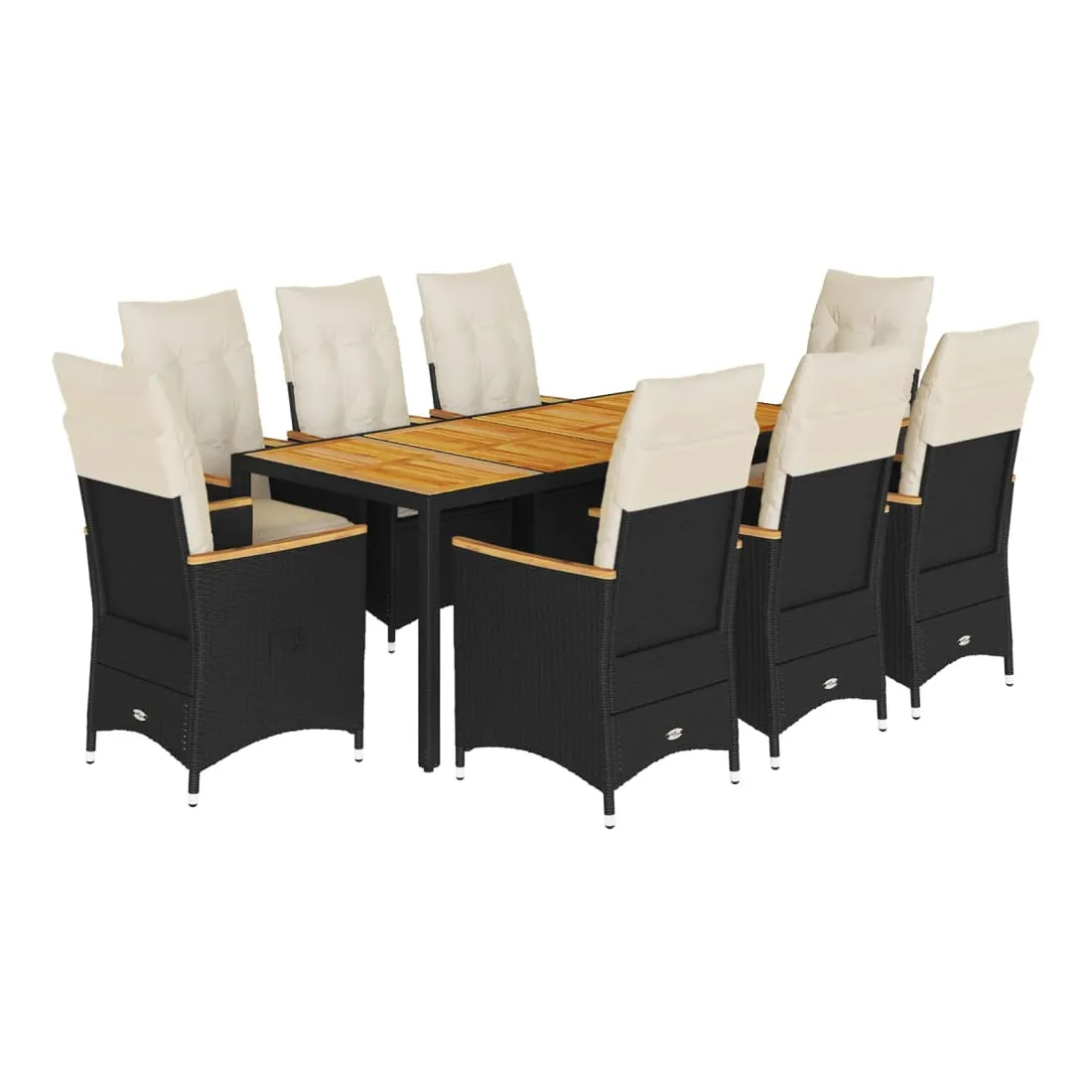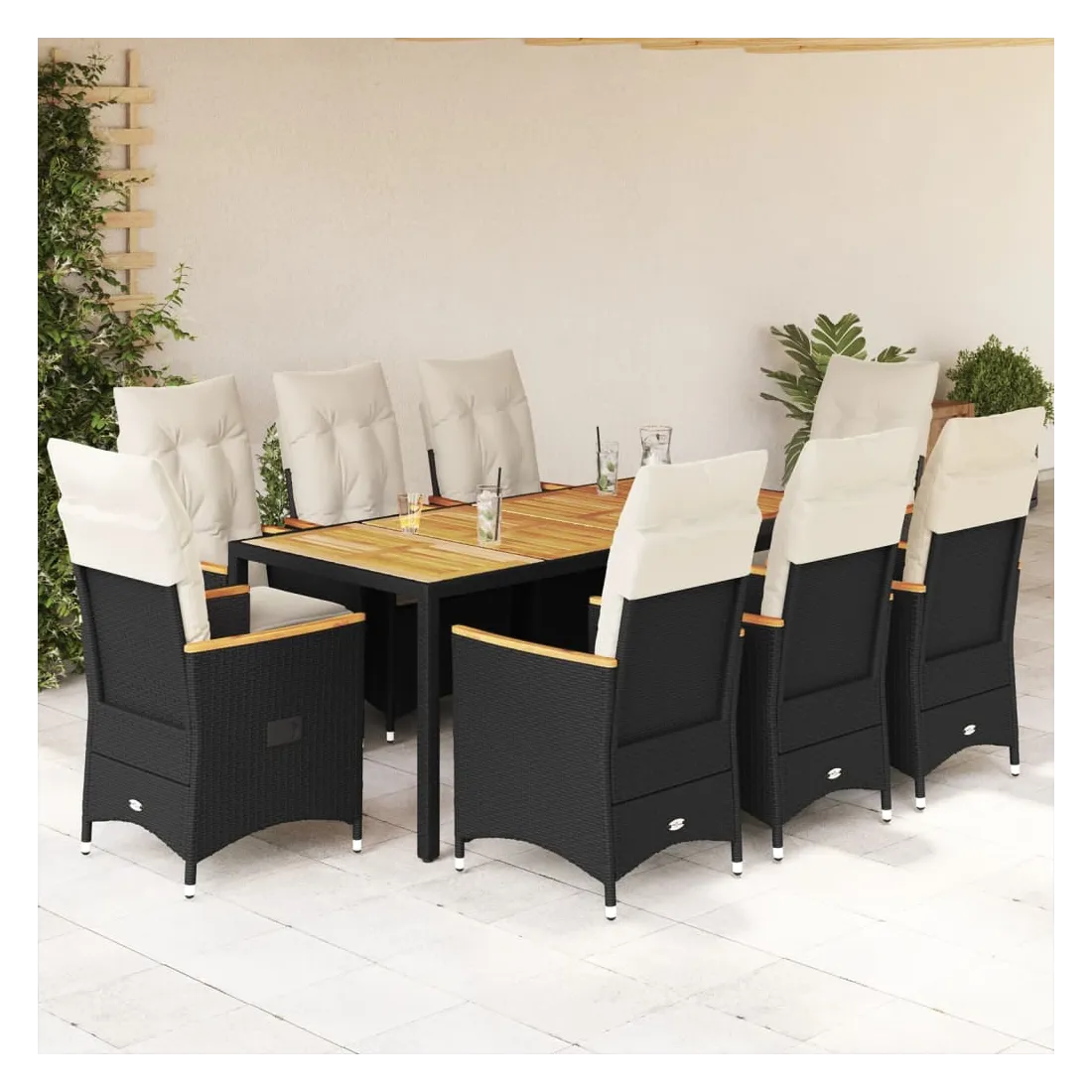 Cet ensemble de salle à manger de jardin est un excellent choix pour les repas en plein air ou pour vous détendre dans le jardin, dans l'arrière-cour ou sur la terrasse. Matériau durable : la résine tressée, également connue sous le nom de poly rotin, est un matériau synthétique solide et nécessitant peu d'entretien qui ressemble au rotin naturel. Il est léger, facile à nettoyer et couramment utilisé pour les meubles d'extérieur en raison de sa durabilité et de ses propriétés de résistance aux intempéries.Dossier réglable : ce siège de jardin est doté d'une poignée. Vous pouvez régler le dossier dans n'importe quelle position en tirant sur la poignée et le remettre rapidement dans sa position initiale.Dessus stable et facile à nettoyer : cette table de jardin a un dessus en bois d'acacia robuste, durable et facile à nettoyer avec un chiffon humide.Expérience d'assise confortable : cet ensemble de meubles d'extérieur, doté de coussins épais, offre une expérience d'assise confortable.Housse amovible et lavable : ces coussins de siège sont dotés de housses amovibles pour un lavage et un entretien faciles. Les coussins de dossier ont un rabat à l'arrière pour une fixation facile aux dossiers. Bon à savoir :Pour que vos meubles d'extérieur restent beaux, nous vous recommandons de les protéger avec une housse imperméable.