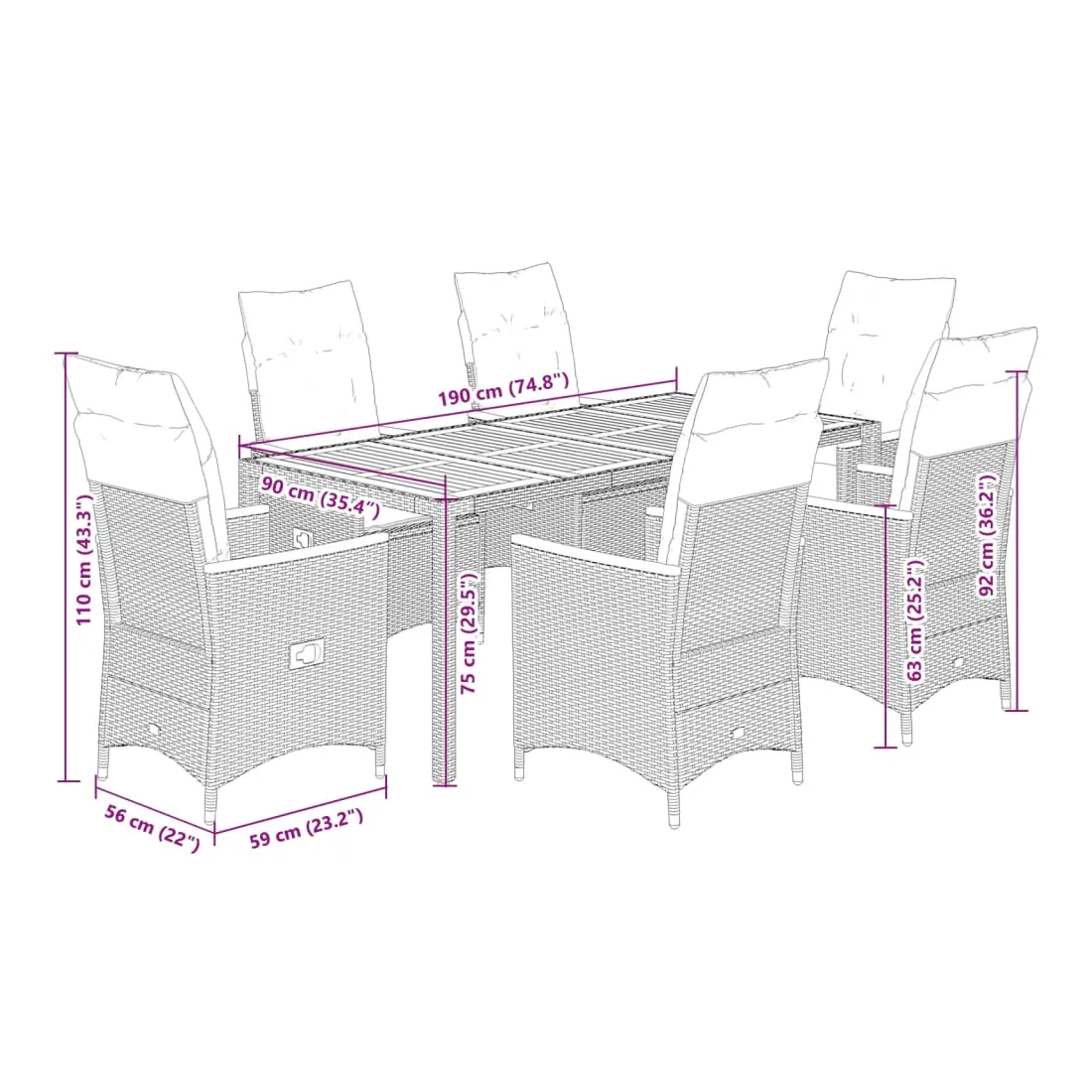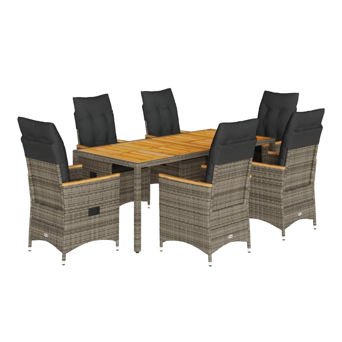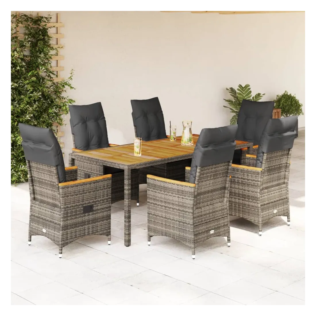 Cet ensemble de salle à manger de jardin est un excellent choix pour les repas en plein air ou pour vous détendre dans le jardin, dans l'arrière-cour ou sur la terrasse. Matériau durable : la résine tressée, également connue sous le nom de poly rotin, est un matériau synthétique solide et nécessitant peu d'entretien qui ressemble au rotin naturel. Il est léger, facile à nettoyer et couramment utilisé pour les meubles d'extérieur en raison de sa durabilité et de ses propriétés de résistance aux intempéries.Dossier réglable : ce siège de jardin est doté d'une poignée. Vous pouvez régler le dossier dans n'importe quelle position en tirant sur la poignée et le remettre rapidement dans sa position initiale.Dessus stable et facile à nettoyer : cette table de jardin a un dessus en bois d'acacia robuste, durable et facile à nettoyer avec un chiffon humide.Expérience d'assise confortable : cet ensemble de meubles d'extérieur, doté de coussins épais, offre une expérience d'assise confortable.Housse amovible et lavable : ces coussins de siège sont dotés de housses amovibles pour un lavage et un entretien faciles. Les coussins de dossier ont un rabat à l'arrière pour une fixation facile aux dossiers. Bon à savoir :Pour que vos meubles d'extérieur restent beaux, nous vous recommandons de les protéger avec une housse imperméable.