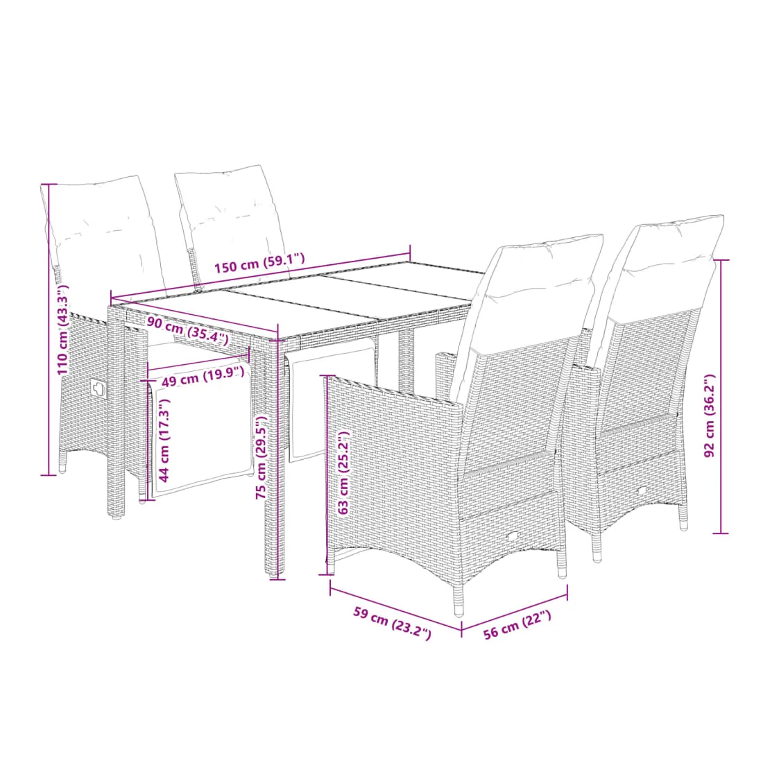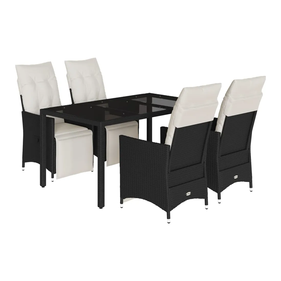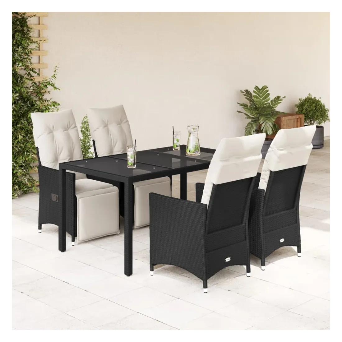 Cet ensemble de salle à manger de jardin est un excellent choix pour les repas en plein air ou pour vous détendre dans le jardin, dans l'arrière-cour ou sur la terrasse. Matériau durable : la résine tressée, également connue sous le nom de poly rotin, est un matériau synthétique solide et nécessitant peu d'entretien qui ressemble au rotin naturel. Il est léger, facile à nettoyer et couramment utilisé pour les meubles d'extérieur en raison de sa durabilité et de ses propriétés de résistance aux intempéries.Dossier et repose-pied réglables : ce siège de jardin est doté d'une poignée. Vous pouvez régler le dossier et le repose-pied dans n'importe quelle position en tirant sur la poignée, et les remettre rapidement dans leur position initiale.Dessus en verre : le dessus de la table d'extérieur est fabriqué en verre trempé solide et durable, ce qui le rend facile à nettoyer avec un chiffon humide et ajoute une touche d'élégance à votre espace extérieur.Expérience d'assise confortable : cet ensemble de meubles d'extérieur, doté de coussins épais, offre une expérience d'assise confortable.Housse amovible et lavable : ces coussins de siège sont dotés de housses amovibles pour un lavage et un entretien faciles. Les coussins de dossier ont un rabat à l'arrière pour une fixation facile aux dossiers. Bon à savoir :Pour que vos meubles d'extérieur restent beaux, nous vous recommandons de les protéger avec une housse imperméable.
