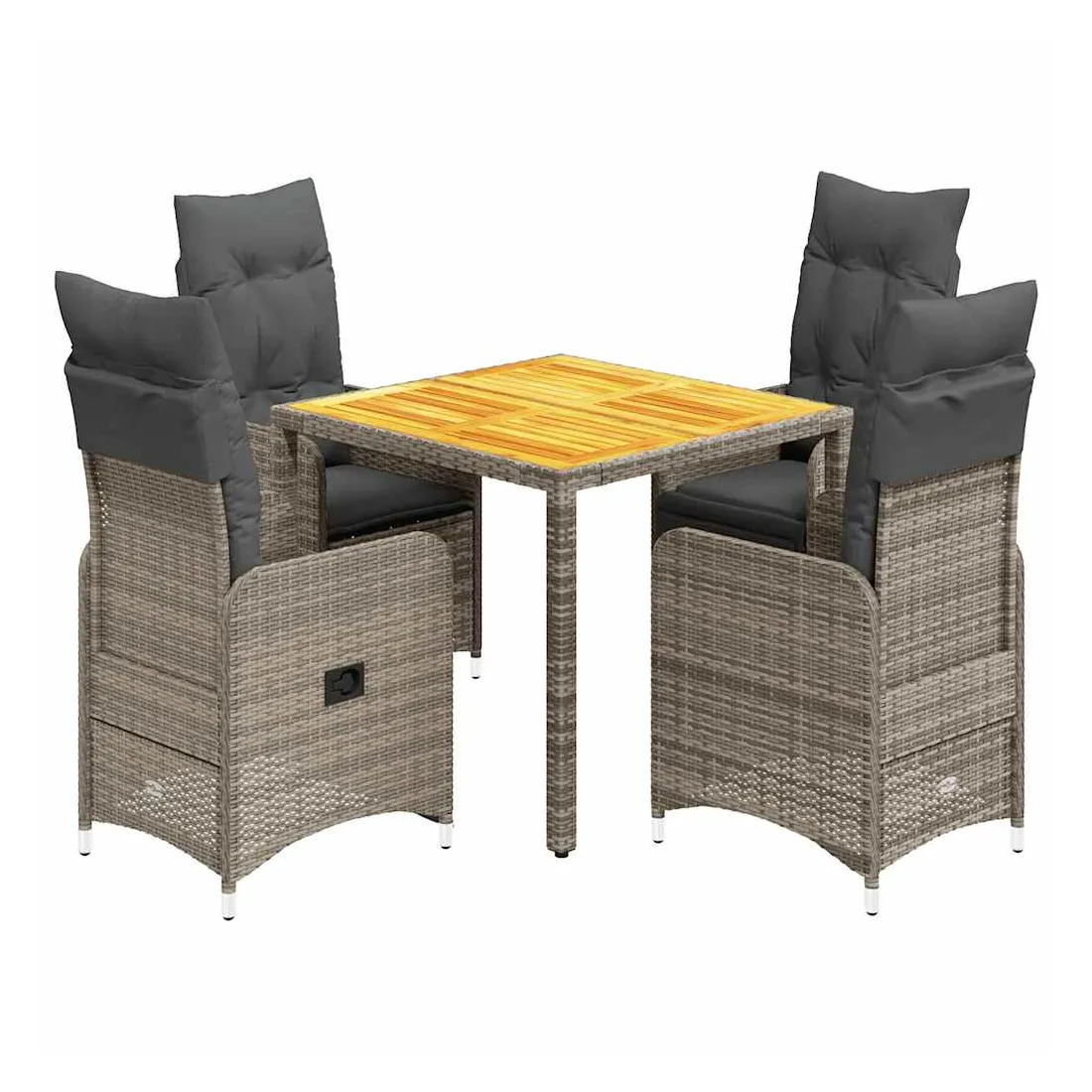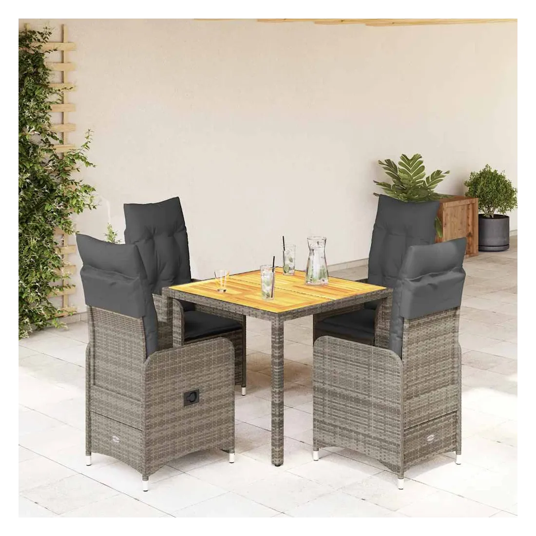 Savourez un café ou discutez avec votre famille et vos amis dans le jardin, la cour arrière ou sur le balcon grâce à cet ensemble bistrot confortable ! Matériau durable : le rotin PE, également appelé polyrotin, est un matériau synthétique solide et facile d'entretien qui ressemble au rotin naturel. Il est léger, facile à nettoyer et couramment utilisé pour les meubles d'extérieur en raison de sa durabilité et de ses propriétés résistantes aux intempéries. Dossier réglable : ce siège de jardin est équipé d'une poignée. Vous pouvez régler le dossier dans n'importe quelle position en tirant sur la poignée, puis le remettre rapidement dans sa position d'origine. Assise confortable : ce mobilier d'extérieur, doté de coussins épais et rembourrés, offre une assise confortable. Housse amovible et lavable : les coussins d'assise sont dotés de housses amovibles pour faciliter le lavage et l'entretien. Les coussins de dossier sont dotés d'un rabat à l'arrière pour faciliter leur fixation aux dossiers. Plateau stable et facile à nettoyer : cette table de jardin est dotée d'un plateau en bois d'acacia robuste, durable et facile à nettoyer avec un chiffon humide. Bon à savoir :Pour que votre mobilier d'extérieur reste beau, nous vous recommandons de le protéger avec une housse imperméable.