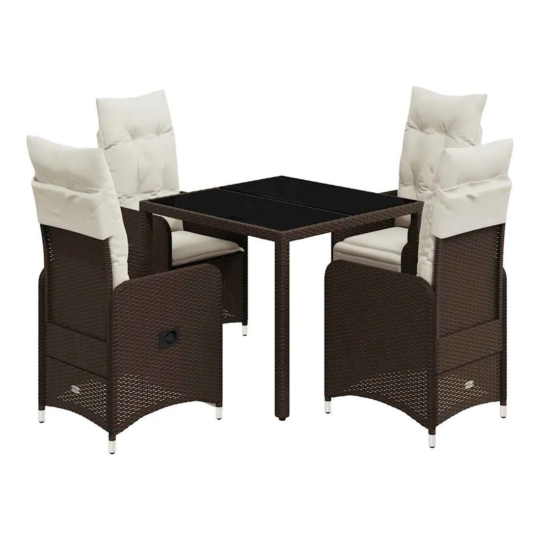 Savourez un café ou discutez avec votre famille et vos amis dans le jardin, la cour arrière ou sur le balcon grâce à cet ensemble bistrot confortable ! Matériau durable : le rotin PE, également appelé polyrotin, est un matériau synthétique solide et facile d'entretien qui ressemble au rotin naturel. Il est léger, facile à nettoyer et couramment utilisé pour les meubles d'extérieur en raison de sa durabilité et de ses propriétés résistantes aux intempéries. Dossier réglable : ce siège de jardin est équipé d'une poignée. Vous pouvez régler le dossier dans n'importe quelle position en tirant sur la poignée, puis le remettre rapidement dans sa position d'origine. Assise confortable : ce mobilier d'extérieur, doté de coussins épais et rembourrés, offre une assise confortable. Housse amovible et lavable : les coussins d'assise sont dotés de housses amovibles pour faciliter le lavage et l'entretien. Les coussins de dossier sont dotés d'un rabat à l'arrière pour faciliter leur fixation aux dossiers. Plateau en verre : le plateau de la table d'extérieur est en verre trempé solide et durable, ce qui le rend facile à nettoyer avec un chiffon humide et ajoute une touche d'élégance à votre espace extérieur. Bon à savoir :Pour que votre mobilier d'extérieur reste beau, nous vous recommandons de le protéger avec une housse imperméable.