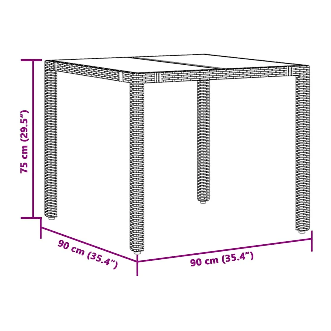 - 90 x 90 x 75 cm