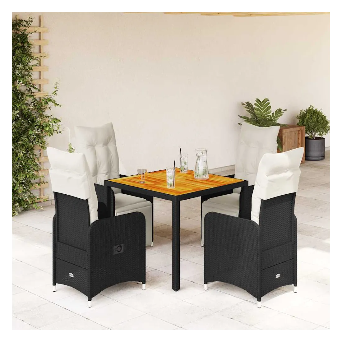 Savourez un café ou discutez avec votre famille et vos amis dans le jardin, l'arrière-cour ou sur le balcon avec cet ensemble de bistro confortable ! Matériau durable : la résine tressée, également connue sous le nom de poly rotin, est un matériau synthétique solide et nécessitant peu d'entretien qui ressemble au rotin naturel. Elle est légère, facile à nettoyer et couramment utilisée pour les meubles d'extérieur en raison de sa durabilité et de ses propriétés de résistance aux intempéries.Dossier et repose-pied réglables : ce siège de jardin est doté d'une poignée. Vous pouvez régler le dossier et le repose-pied dans n'importe quelle position en tirant sur la poignée, et le remettre rapidement dans sa position initiale.Expérience d'assise confortable : ce mobilier d'extérieur, doté de coussins épais, offre une expérience d'assise confortable.Housse amovible et lavable : ces coussins de siège sont dotés de housses amovibles pour un lavage et un entretien faciles. Les coussins de dossier ont un rabat à l'arrière pour une fixation facile aux dossiers.Dessus stable et facile à nettoyer : cette table de jardin a un dessus en bois d'acacia robuste, durable et facile à nettoyer avec un chiffon humide. Bon à savoir :Pour que vos meubles d'extérieur restent beaux, nous vous recommandons de les protéger avec une housse imperméable.