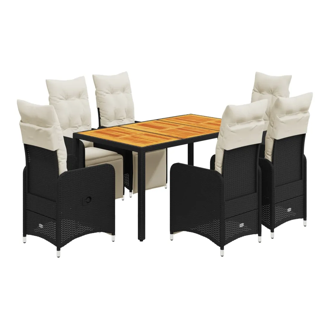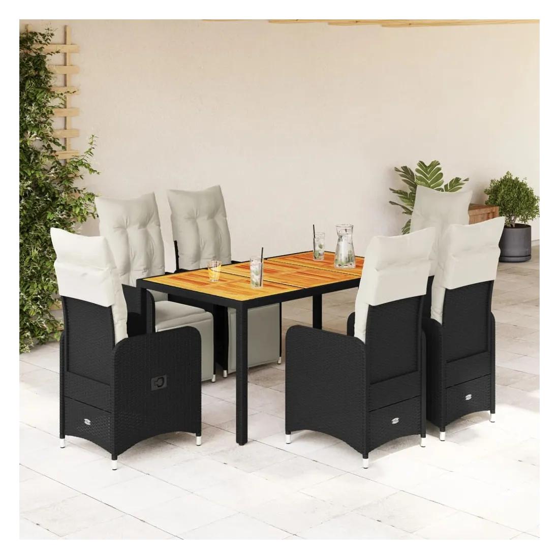 Savourez un café ou discutez avec votre famille et vos amis dans le jardin, l'arrière-cour ou sur le balcon avec cet ensemble de bistro confortable ! Matériau durable : la résine tressée, également connue sous le nom de poly rotin, est un matériau synthétique solide et nécessitant peu d'entretien qui ressemble au rotin naturel. Elle est légère, facile à nettoyer et couramment utilisée pour les meubles d'extérieur en raison de sa durabilité et de ses propriétés de résistance aux intempéries.Dossier et repose-pied réglables : ce siège de jardin est doté d'une poignée. Vous pouvez régler le dossier et le repose-pied dans n'importe quelle position en tirant sur la poignée, et le remettre rapidement dans sa position initiale.Expérience d'assise confortable : ce mobilier d'extérieur, doté de coussins épais, offre une expérience d'assise confortable.Housse amovible et lavable : ces coussins de siège sont dotés de housses amovibles pour un lavage et un entretien faciles. Les coussins de dossier ont un rabat à l'arrière pour une fixation facile aux dossiers.Dessus stable et facile à nettoyer : cette table de jardin a un dessus en bois d'acacia robuste, durable et facile à nettoyer avec un chiffon humide. Bon à savoir :Pour que vos meubles d'extérieur restent beaux, nous vous recommandons de les protéger avec une housse imperméable.