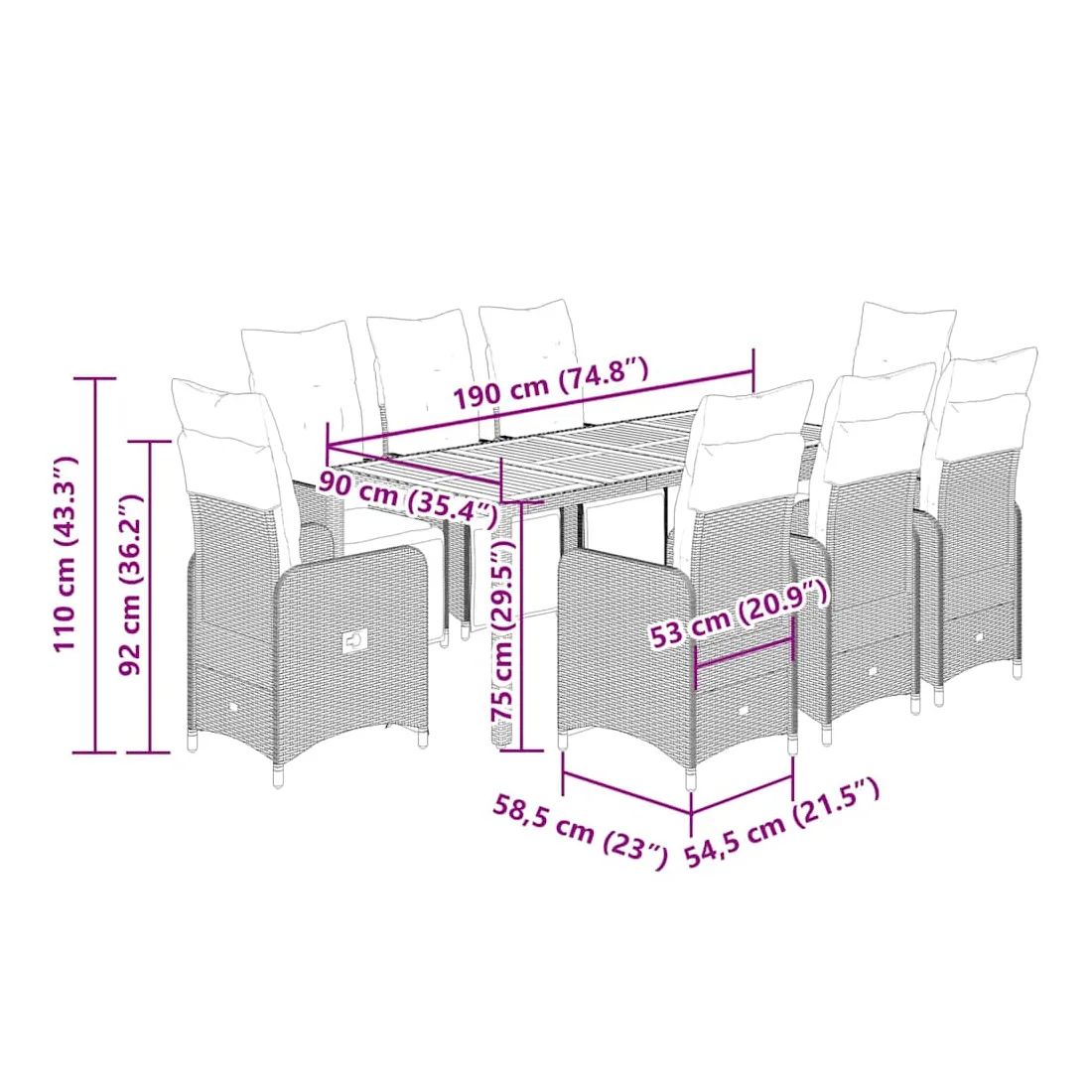 - Dimensions de l'assise : 54,5 x 58,5 x 92 cm (l x P x H)