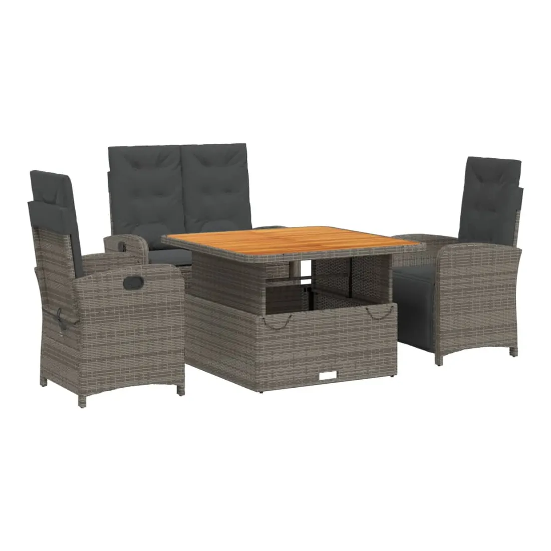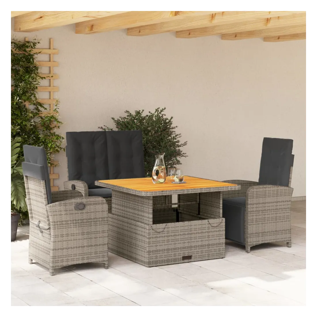 Cet ensemble de salle à manger de jardin est un excellent choix pour les repas en plein air ou simplement pour se détendre dans le jardin, la cour arrière ou sur la terrasse. Matériau durable : le rotin PE, également connu sous le nom de polyrotin, est un matériau synthétique solide et facile d'entretien qui ressemble au rotin naturel. Il est léger, facile à nettoyer et couramment utilisé pour les meubles d'extérieur en raison de sa durabilité et de ses propriétés de résistance aux intempéries. Dossier réglable : ce siège de jardin est équipé d'une poignée. Vous pouvez régler le dossier dans n'importe quelle position en tirant sur la poignée, puis le remettre rapidement dans sa position d'origine. Plateau réglable : le plateau peut être relevé pour rehausser la table, ce qui transforme la table d'extérieur en table basse ou en table à manger. Elle est parfaite pour recevoir des invités ou prendre des repas à l'extérieur. Housse amovible et lavable : ces coussins d'assise sont dotés de housses amovibles pour faciliter le lavage et l'entretien. Les coussins de dossier sont munis d'un rabat à l'arrière pour faciliter leur fixation aux dossiers. Assise confortable : Ce mobilier d'extérieur, doté de coussins épais et rembourrés, offre une assise confortable. Bon à savoir :Pour que votre mobilier d'extérieur reste beau, nous vous recommandons de le protéger avec une housse imperméable.
