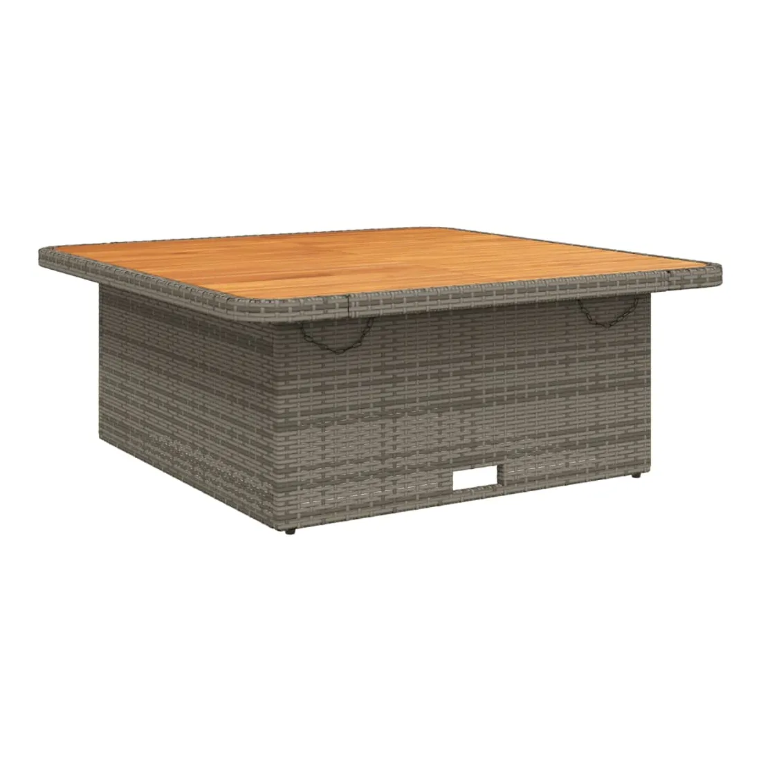 - Matériaux : Rotin PE, acier thermolaqué, bois d’acacia massif finition huilée