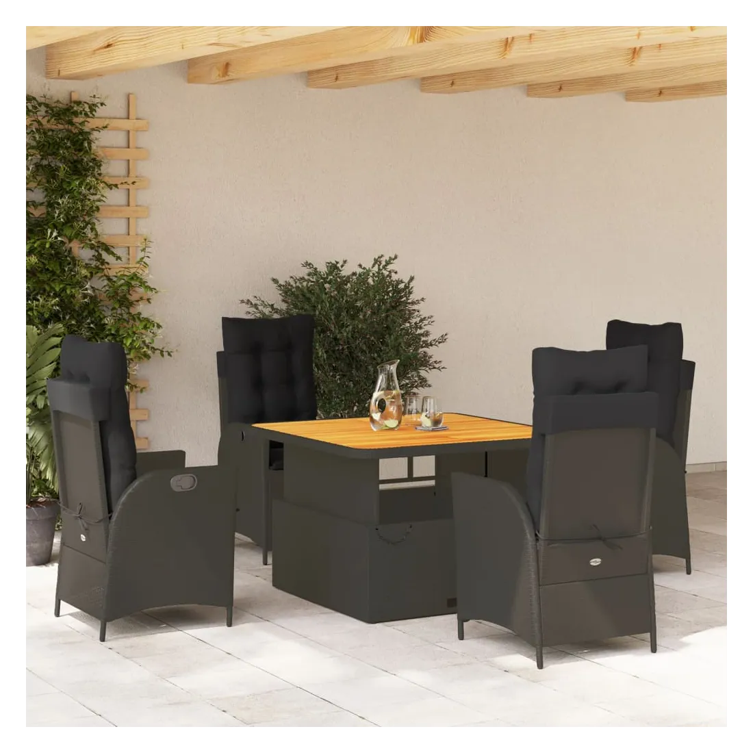 - Matériau : résine tressée, acier enduit de poudre, bois d'acacia massif avec finition à l'huile