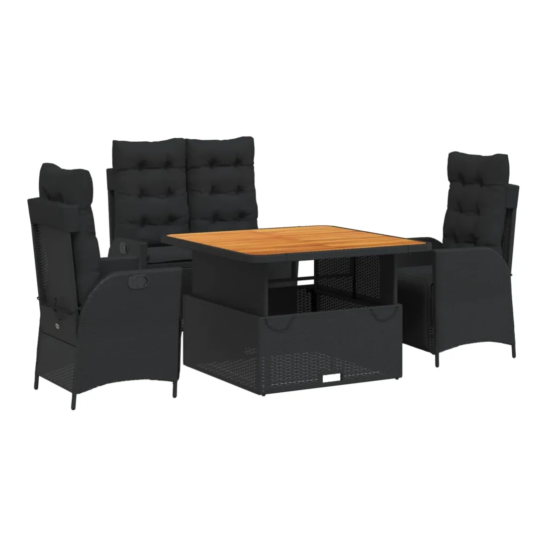 - Matériaux : Rotin PE, acier thermolaqué, bois d’acacia massif finition huilée