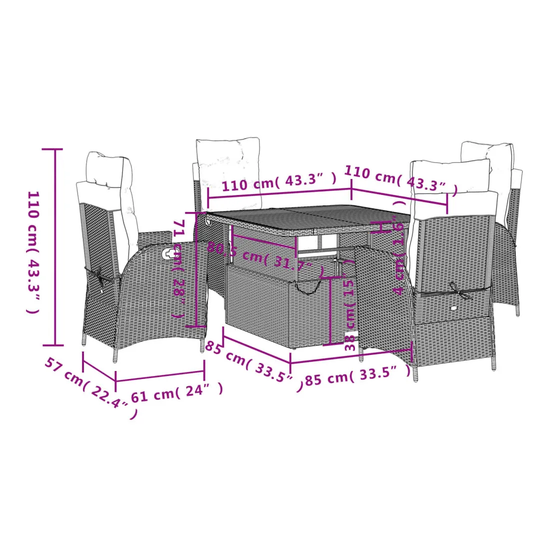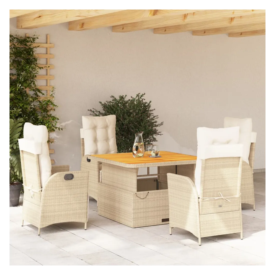 Ensemble à manger de jardin avec coussins 5pcs Beige poly rotin