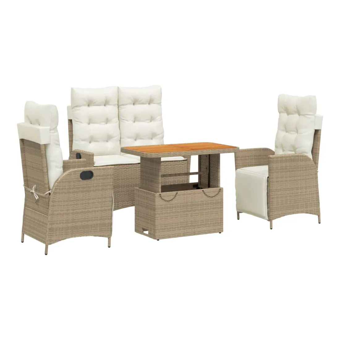 Cet ensemble de salle à manger de jardin est un excellent choix pour les repas en plein air ou simplement pour se détendre dans le jardin, la cour arrière ou sur la terrasse. Matériau durable : le rotin PE, également connu sous le nom de polyrotin, est un matériau synthétique solide et facile d'entretien qui ressemble au rotin naturel. Il est léger, facile à nettoyer et couramment utilisé pour les meubles d'extérieur en raison de sa durabilité et de ses propriétés de résistance aux intempéries. Dossier réglable : ce siège de jardin est équipé d'une poignée. Vous pouvez régler le dossier dans n'importe quelle position en tirant sur la poignée, puis le remettre rapidement dans sa position d'origine. Plateau réglable : le plateau peut être relevé pour rehausser la table, ce qui transforme la table d'extérieur en table basse ou en table à manger. Elle est parfaite pour recevoir des invités ou prendre des repas à l'extérieur. Housse amovible et lavable : ces coussins d'assise sont dotés de housses amovibles pour faciliter le lavage et l'entretien. Les coussins de dossier sont munis d'un rabat à l'arrière pour faciliter leur fixation aux dossiers. Assise confortable : Ce mobilier d'extérieur, doté de coussins épais et rembourrés, offre une assise confortable. Bon à savoir :Pour que votre mobilier d'extérieur reste beau, nous vous recommandons de le protéger avec une housse imperméable.