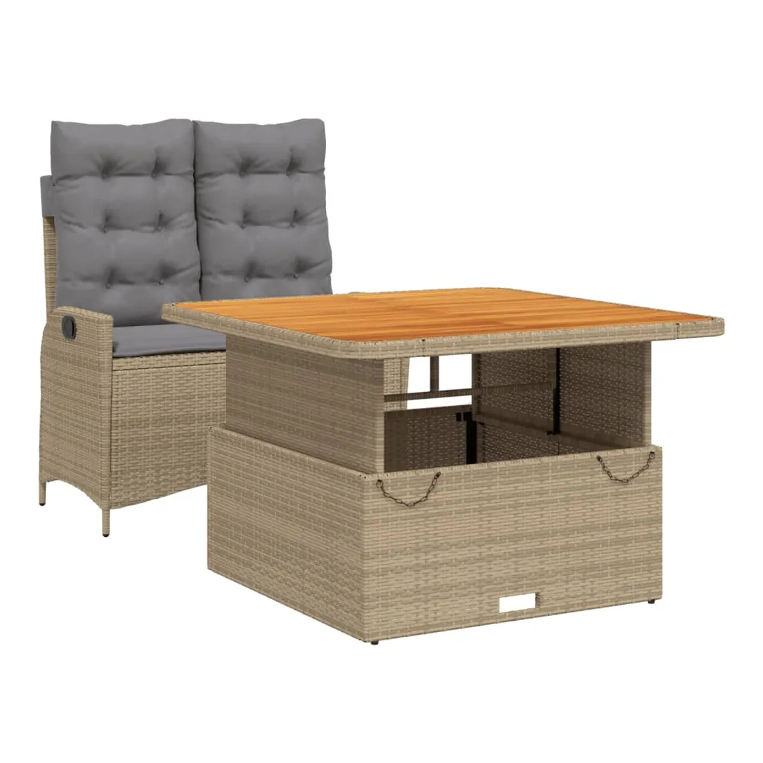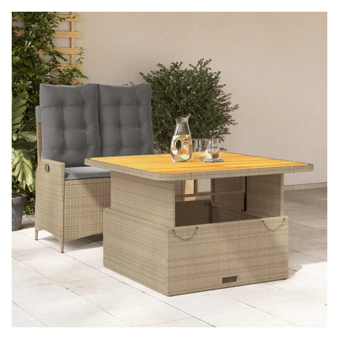 Cet ensemble de salle à manger de jardin est un excellent choix pour les repas en plein air ou pour vous détendre dans le jardin, dans l'arrière-cour ou sur la terrasse. Matériau durable : la résine tressée, également connue sous le nom de poly rotin, est un matériau synthétique solide et nécessitant peu d'entretien qui ressemble au rotin naturel. Il est léger, facile à nettoyer et couramment utilisé pour les meubles d'extérieur en raison de sa durabilité et de ses propriétés de résistance aux intempéries.Dossier réglable : ce siège de jardin est doté d'une poignée. Vous pouvez régler le dossier dans n'importe quelle position en tirant sur la poignée et le remettre rapidement dans sa position initiale.Dessus de table réglable : le dessus de table peut être soulevé pour rendre la table plus haute, ce qui transforme la table d'extérieur d'une table basse à une table de salle à manger. Elle est parfaite pour recevoir des invités ou prendre des repas à l'extérieur.Housse amovible et lavable : ces coussins de siège sont dotés de housses amovibles pour un lavage et un entretien faciles. Les coussins de dossier ont un rabat à l'arrière pour une fixation facile aux dossiers.Expérience d'assise confortable : ce mobilier d'extérieur, doté de coussins épais, offre une expérience d'assise confortable. Bon à savoir :Pour que vos meubles d'extérieur restent beaux, nous vous recommandons de les protéger avec une housse imperméable.