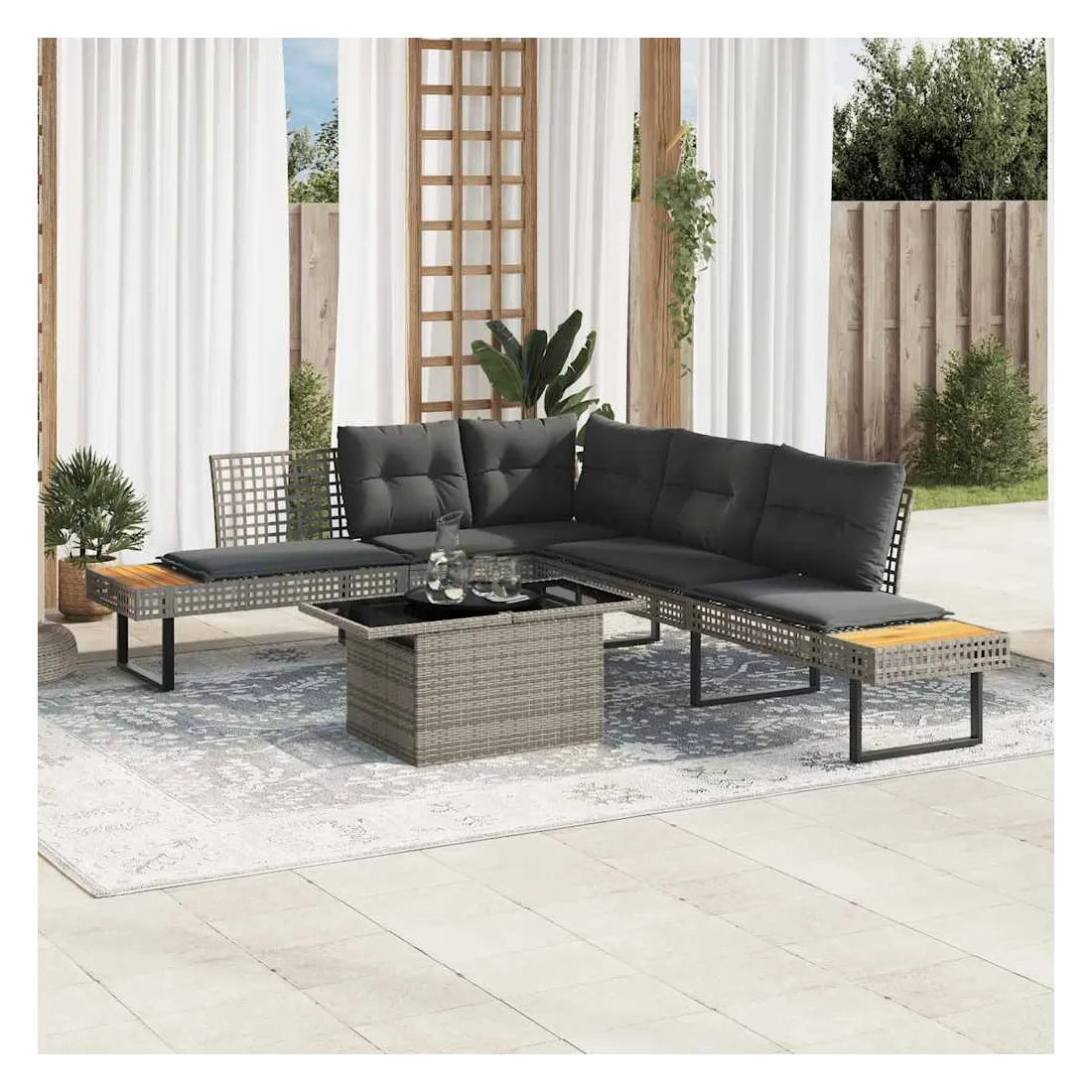 Cet ensemble de canapés de jardin est le complément parfait de votre arrière-cour, terrasse ou patio, offrant un espace confortable et accueillant pour discuter avec la famille et les amis ou simplement se détendre et profiter de l'extérieur. Matériau durable : la résine tressée, également connue sous le nom de poly rotin, est un matériau synthétique solide et nécessitant peu d'entretien qui ressemble au rotin naturel. Elle est légère, facile à nettoyer et couramment utilisée pour les meubles d'extérieur en raison de sa durabilité et de ses propriétés de résistance aux intempéries.Expérience d'assise confortable : l'ensemble de meubles d'extérieur, doté de coussins épais, offre une expérience d'assise confortable.Housse amovible et lavable : ces coussins de siège sont dotés de housses amovibles pour un lavage et un entretien faciles.Plateau réglable : Le plateau peut être relevé pour élever la table, transformant ainsi la table d'extérieur de table basse en table à manger. Idéale pour recevoir des invités ou prendre ses repas en extérieur.Dessus en verre : le dessus de la table d'extérieur est fabriqué en verre trempé solide et durable, ce qui le rend facile à nettoyer avec un chiffon humide et ajoute une touche d'élégance à votre espace extérieur. Bon à savoir :Pour que vos meubles d'extérieur restent beaux, nous vous recommandons de les protéger avec une housse imperméable.