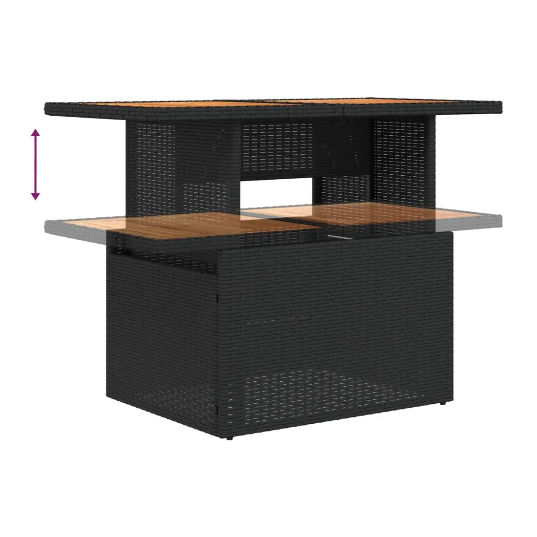 Cet ensemble de canapés de jardin est le complément parfait de votre arrière-cour, terrasse ou patio, offrant un espace confortable et accueillant pour discuter avec la famille et les amis ou simplement se détendre et profiter de l'extérieur. Matériau durable : la résine tressée, également connue sous le nom de poly rotin, est un matériau synthétique solide et nécessitant peu d'entretien qui ressemble au rotin naturel. Elle est légère, facile à nettoyer et couramment utilisée pour les meubles d'extérieur en raison de sa durabilité et de ses propriétés de résistance aux intempéries.Expérience d'assise confortable : l'ensemble de meubles d'extérieur, doté de coussins épais, offre une expérience d'assise confortable.Housse amovible et lavable : ces coussins de siège sont dotés de housses amovibles pour un lavage et un entretien faciles.Dessus de table réglable : le dessus de table peut être soulevé pour rendre la table plus haute, ce qui transforme la table d'extérieur d'une table basse à une table de salle à manger. Elle est parfaite pour recevoir des invités ou prendre des repas à l'extérieur.Dessus stable et facile à nettoyer : cette table de jardin a un dessus en bois d'acacia robuste, durable et facile à nettoyer avec un chiffon humide. Bon à savoir :Pour que vos meubles d'extérieur restent beaux, nous vous recommandons de les protéger avec une housse imperméable.