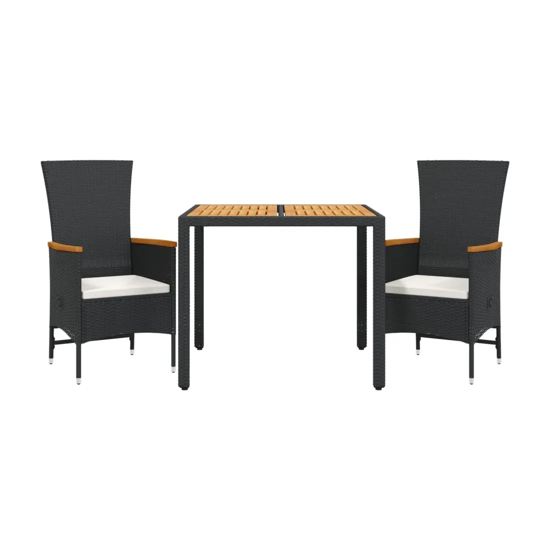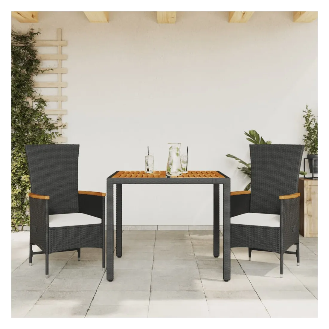 Cet ensemble de salle à manger de jardin est un excellent choix pour les repas en plein air ou pour vous détendre dans le jardin, dans l'arrière-cour ou sur la terrasse. Matériau durable : la résine tressée, également connue sous le nom de poly rotin, est un matériau synthétique solide et nécessitant peu d'entretien qui ressemble au rotin naturel. Il est léger, facile à nettoyer et couramment utilisé pour les meubles d'extérieur en raison de sa durabilité et de ses propriétés de résistance aux intempéries.Dossier réglable : ce siège de jardin est doté d'une poignée. Vous pouvez régler le dossier dans n'importe quelle position en tirant sur la poignée et le remettre rapidement dans sa position initiale.Expérience d'assise confortable : ce mobilier d'extérieur, doté de coussins épais, offre une expérience d'assise confortable.Housse amovible et lavable : ces coussins de siège sont dotés de housses amovibles pour un lavage et un entretien faciles.Dessus stable et facile à nettoyer : cette table de jardin a un dessus en bois d'acacia robuste, durable et facile à nettoyer avec un chiffon humide. Bon à savoir :Pour que vos meubles d'extérieur restent beaux, nous vous recommandons de les protéger avec une housse imperméable.
