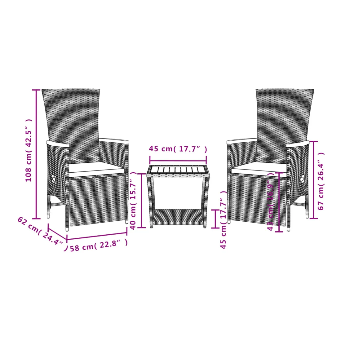 - Dimensions du siège : 58 x 62 x 108 cm (l x P x H)