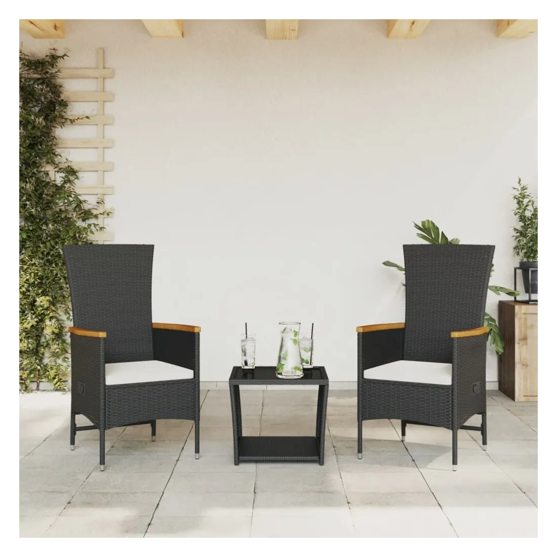 Cet ensemble de salle à manger de jardin est un excellent choix pour les repas en plein air ou pour vous détendre dans le jardin, dans l'arrière-cour ou sur la terrasse. Matériau durable : la résine tressée, également connue sous le nom de poly rotin, est un matériau synthétique solide et nécessitant peu d'entretien qui ressemble au rotin naturel. Il est léger, facile à nettoyer et couramment utilisé pour les meubles d'extérieur en raison de sa durabilité et de ses propriétés de résistance aux intempéries.Dossier réglable : ce siège de jardin est doté d'une poignée. Vous pouvez régler le dossier dans n'importe quelle position en tirant sur la poignée et le remettre rapidement dans sa position initiale.Expérience d'assise confortable : ce mobilier d'extérieur, doté de coussins épais, offre une expérience d'assise confortable.Housse amovible et lavable : ces coussins de siège sont dotés de housses amovibles pour un lavage et un entretien faciles.Dessus en verre : le dessus de la table d'extérieur est fabriqué en verre trempé solide et durable, ce qui le rend facile à nettoyer avec un chiffon humide et ajoute une touche d'élégance à votre espace extérieur. Bon à savoir :Pour que vos meubles d'extérieur restent beaux, nous vous recommandons de les protéger avec une housse imperméable.