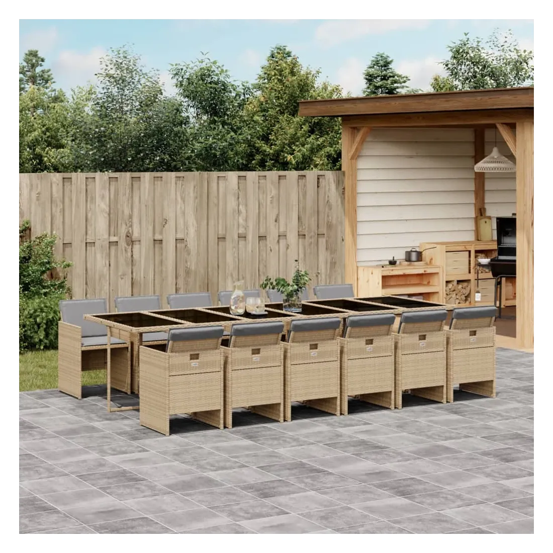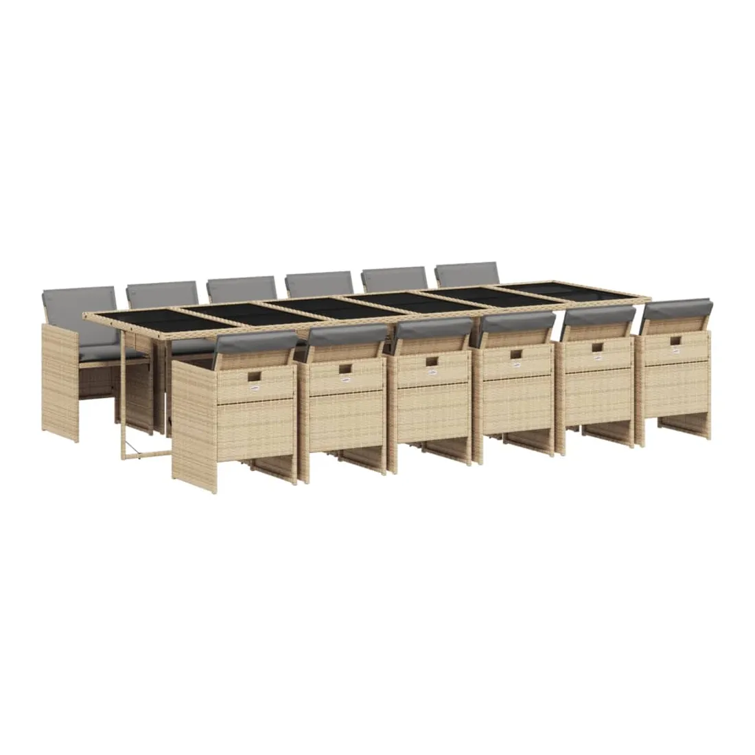 Ensemble à manger de jardin coussins 13 pcs mélange beige rotin