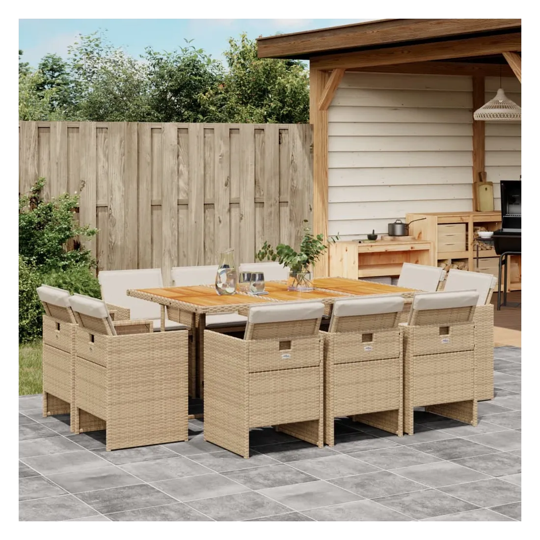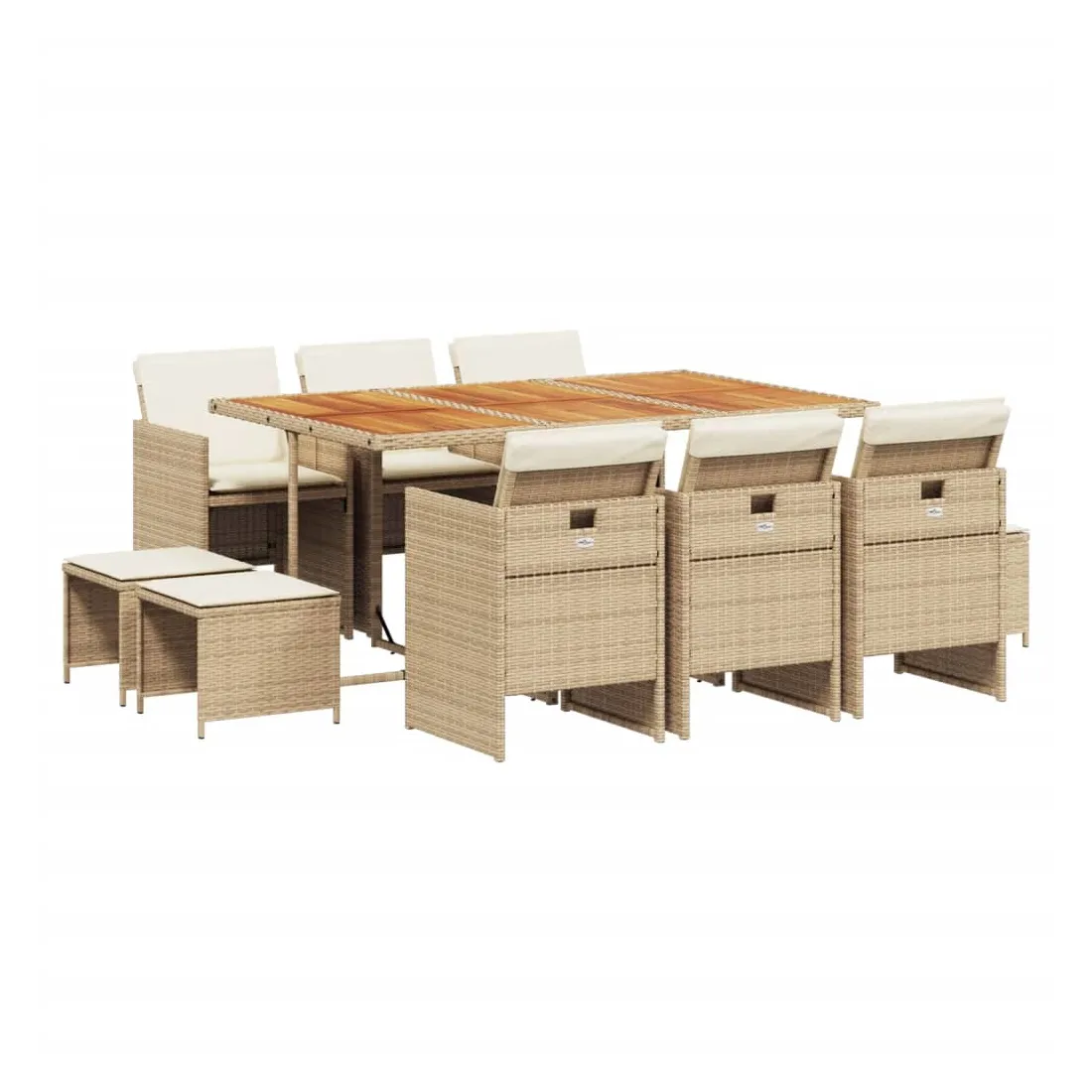 Ensemble à manger de jardin et coussins 11 pcs beige poly rotin