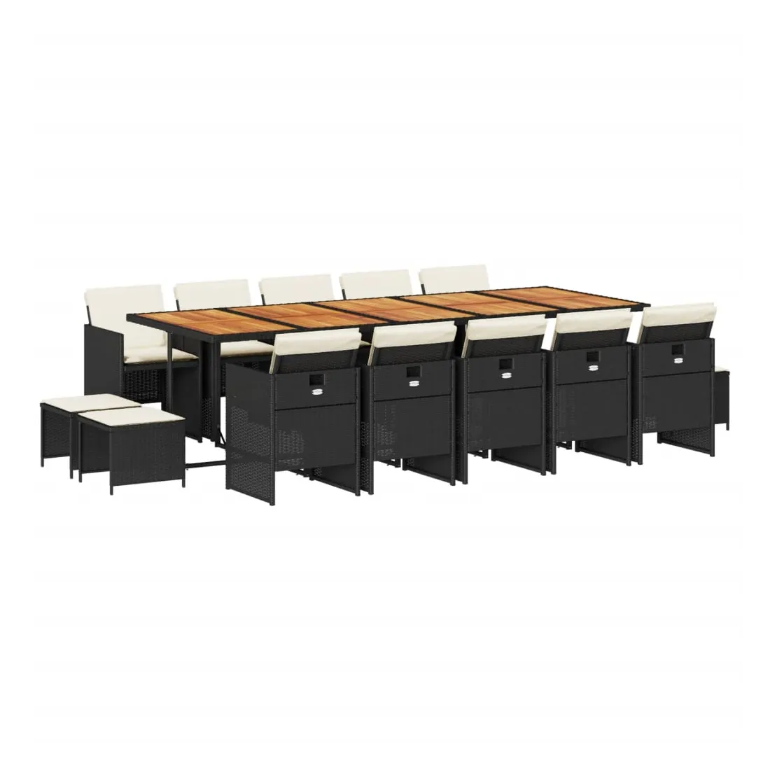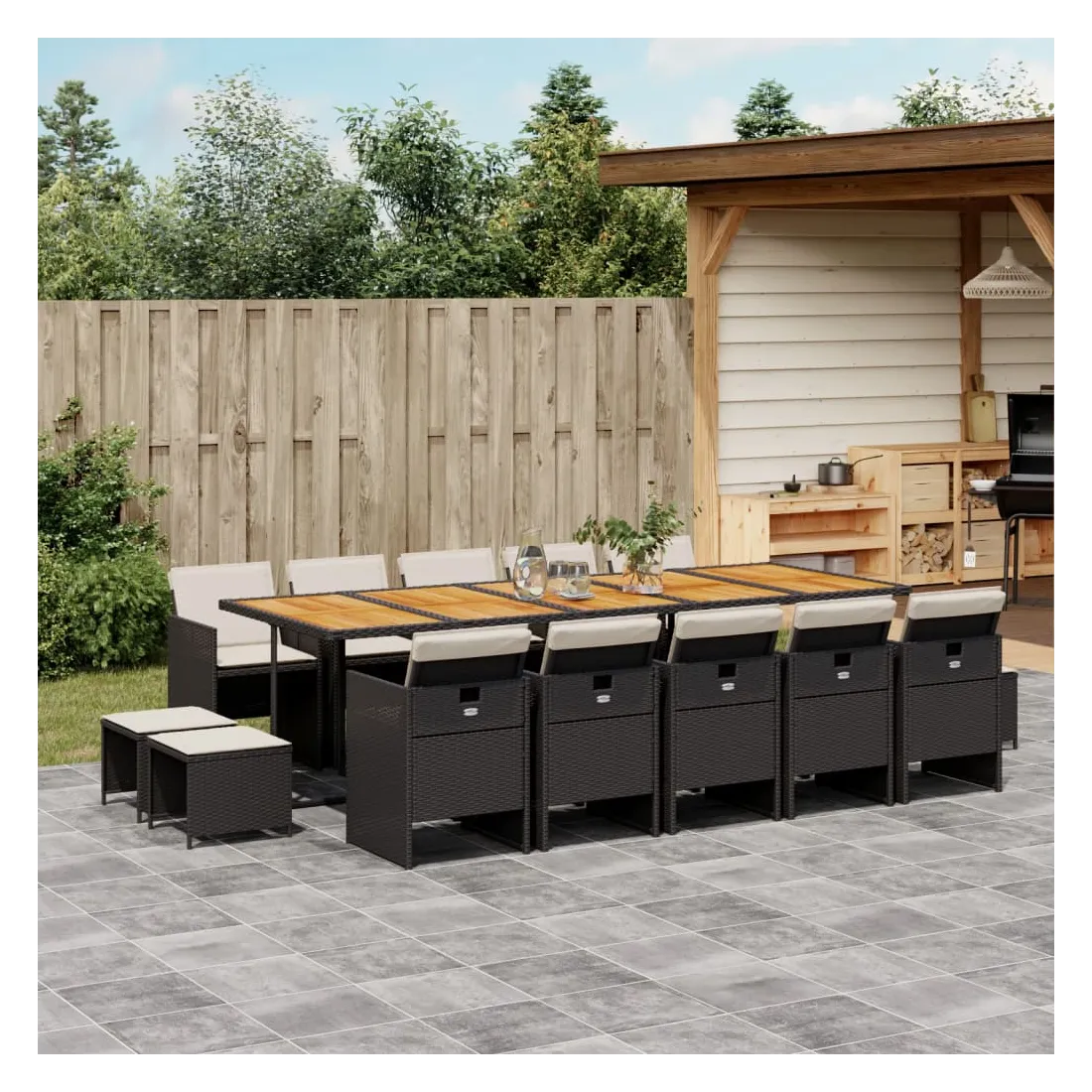 Ensemble à manger de jardin 15 pcs coussins noir résine tressée